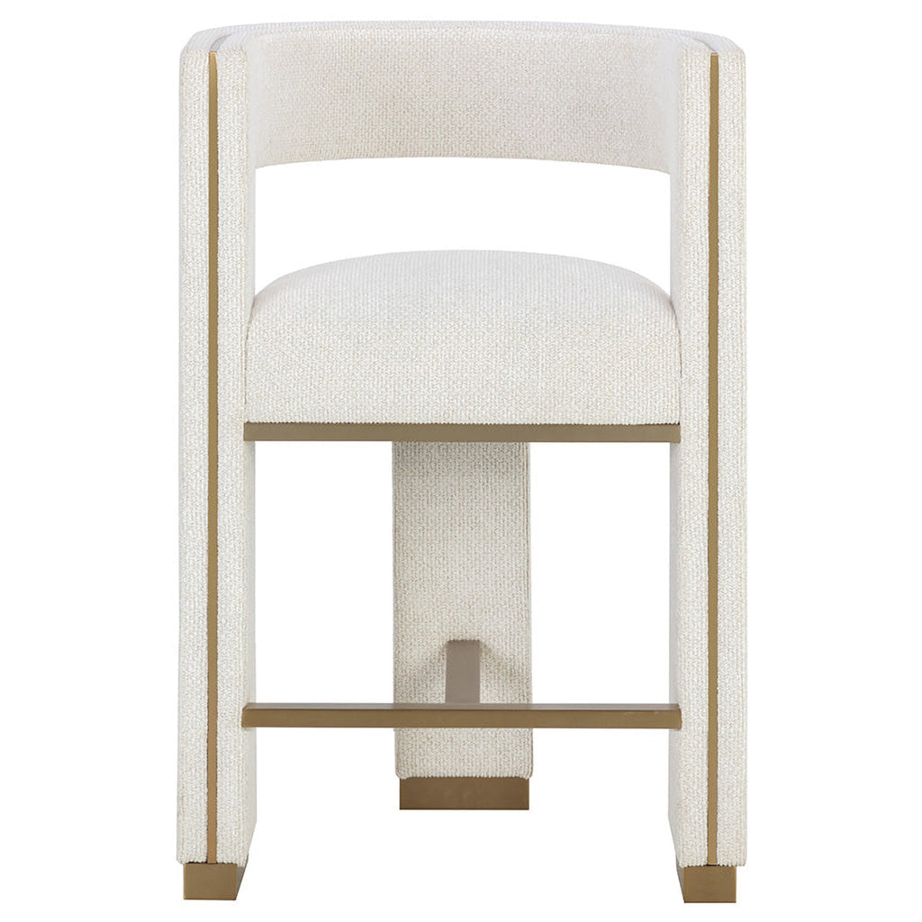 Perfectly poised with a distinct three-legged design, the Adamina counter stool will leave a lasting impression. Powder-coated gold metal detailing enhances the plush texture of our rhea light barley performance fabric for a stylish seating solution. Performance fabric is moisture repellent, durable and easy to clean.
