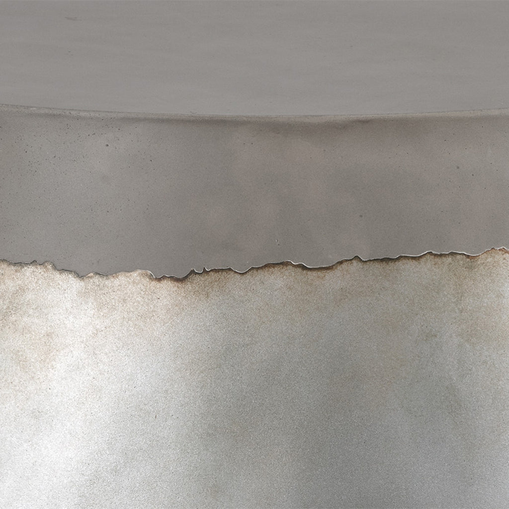 A beautiful concrete coffee table that will add boldness to any space. The drum-shaped design features a dramatic painted black ombre finish. A versatile and functional piece suitable for indoor and covered outdoor spaces. Crafted from a natural concrete mix, each piece will look different, with variations of black hues that will enhance over time.