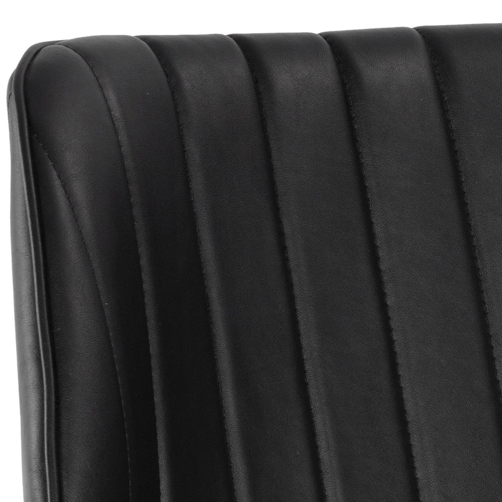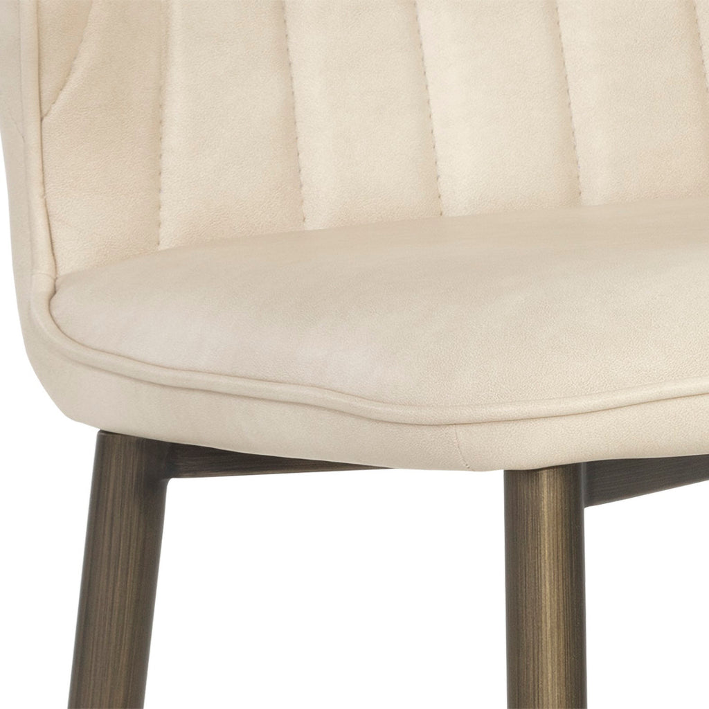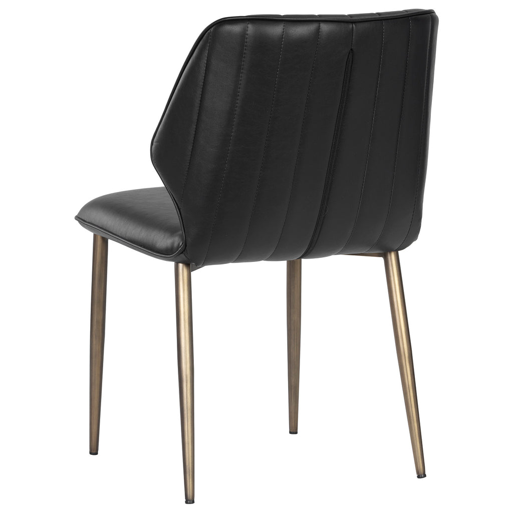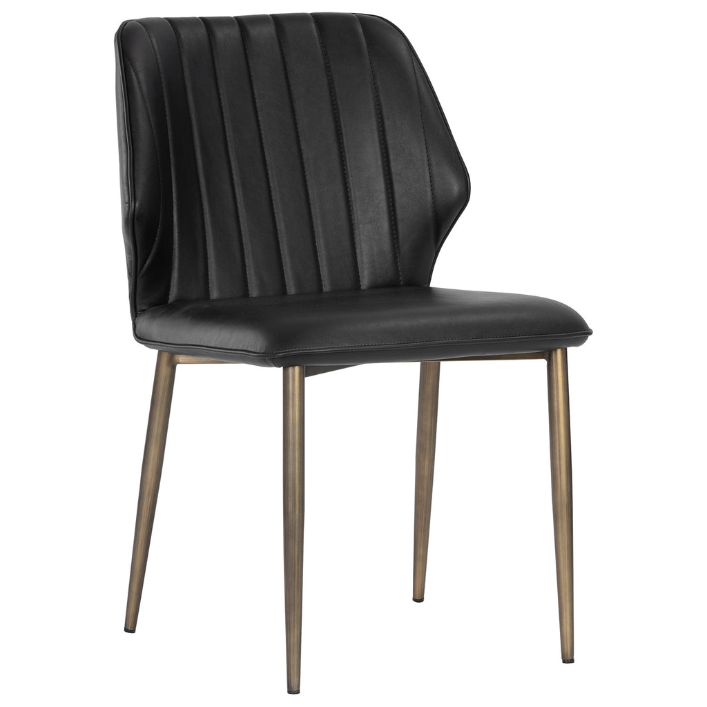 This industrial inspired dining chair is perfect for dining, lounge, office spaces and more. For a feminine touch, this design combines bravo black or cream faux leather with channel tufting and bronze iron legs. Beautiful from all angles.