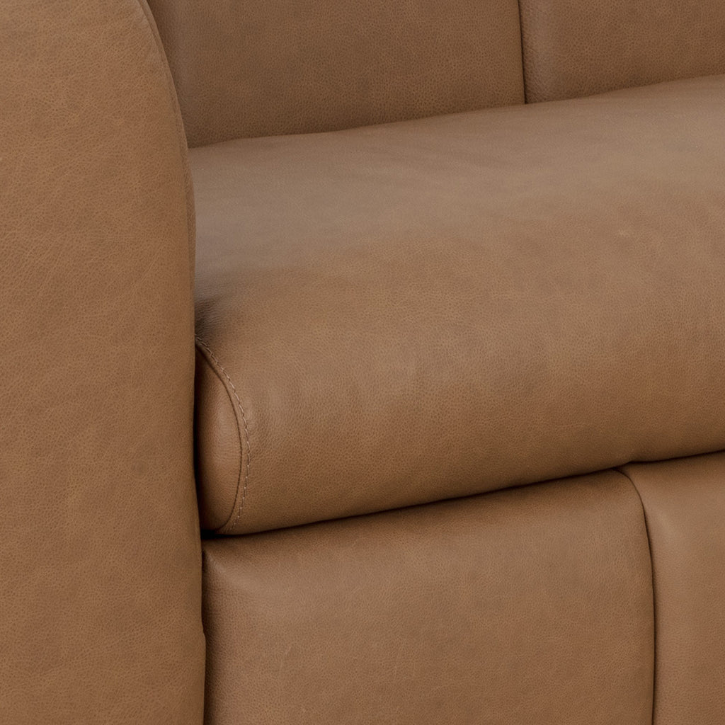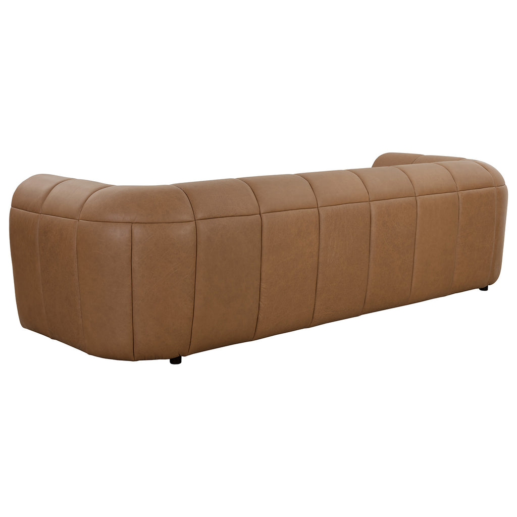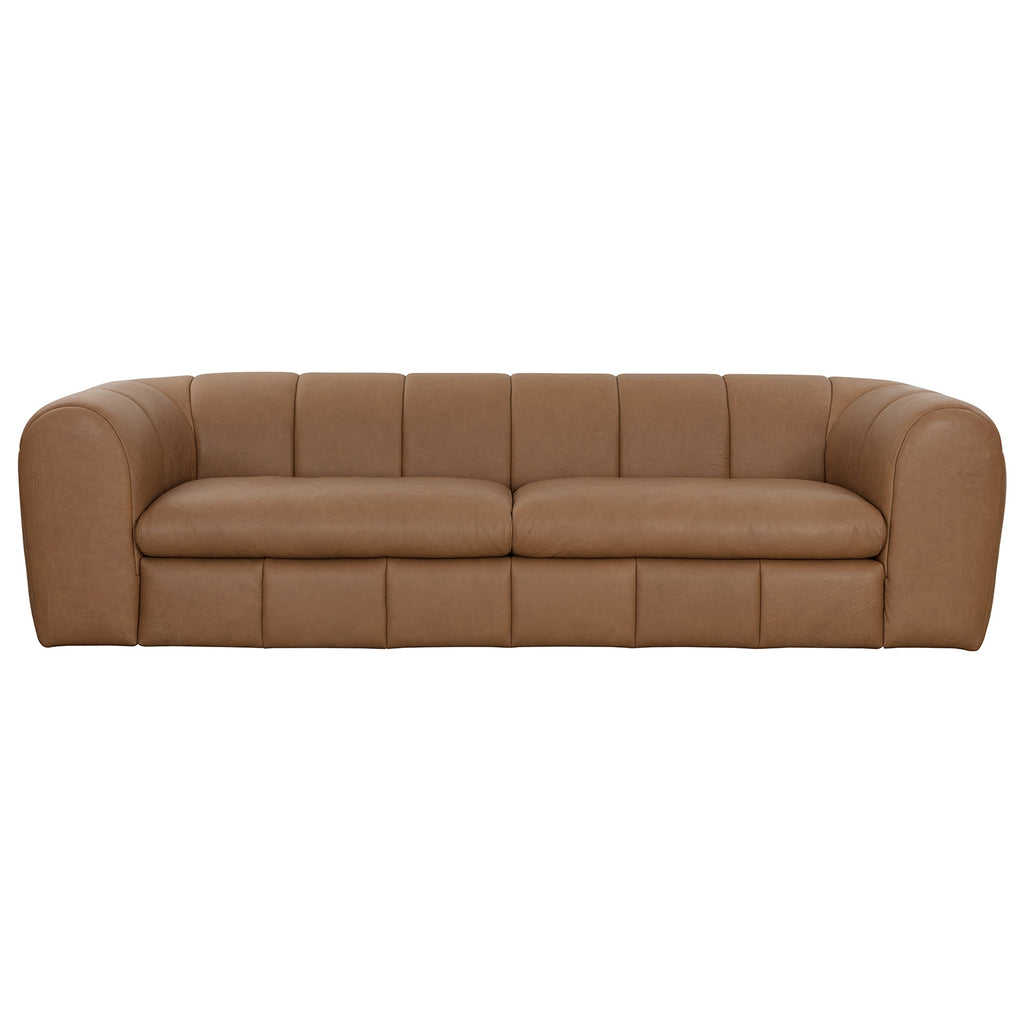 Luxury and comfort blend together in the Cyril Sofa. Vertical channeling and a low rounded profile make this piece stand out in any living space. Generously upholstered in our luxurious franz camel Italian leather.