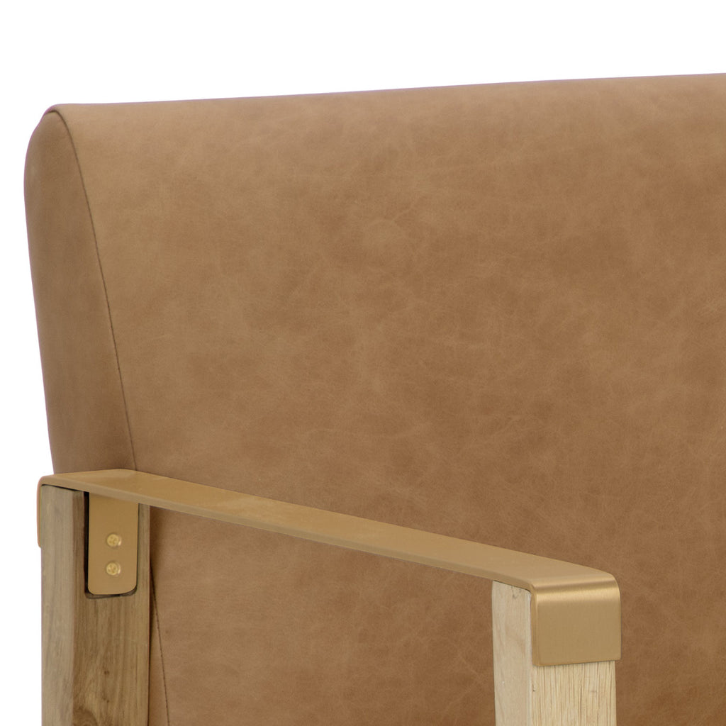 Modern with a refined edge, this lounge chair will bring comfort to any space without compromising style. Stocked in leather with a solid ash gray or rustic oak wood frame. Completed with accenting pewter metal armests.