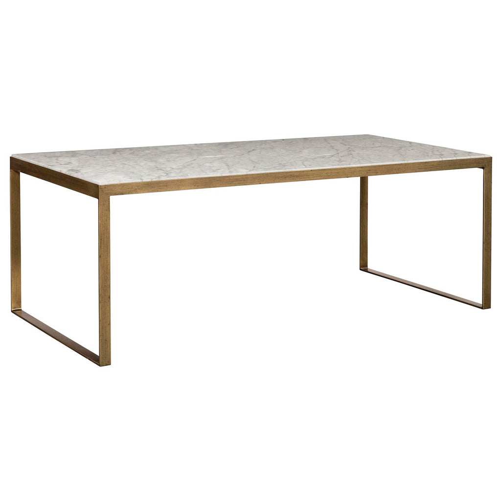 A beautiful modern marble coffee table. Tabletop features a 1in layer of white Italian marble supported by an antique brass iron frame. Can be paired with our low profile Evert coffee table for added dimension. Each piece sold separately.