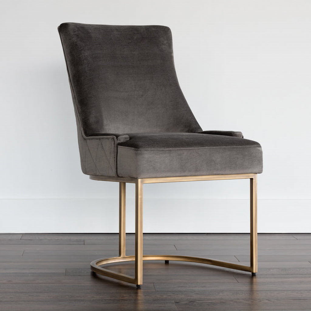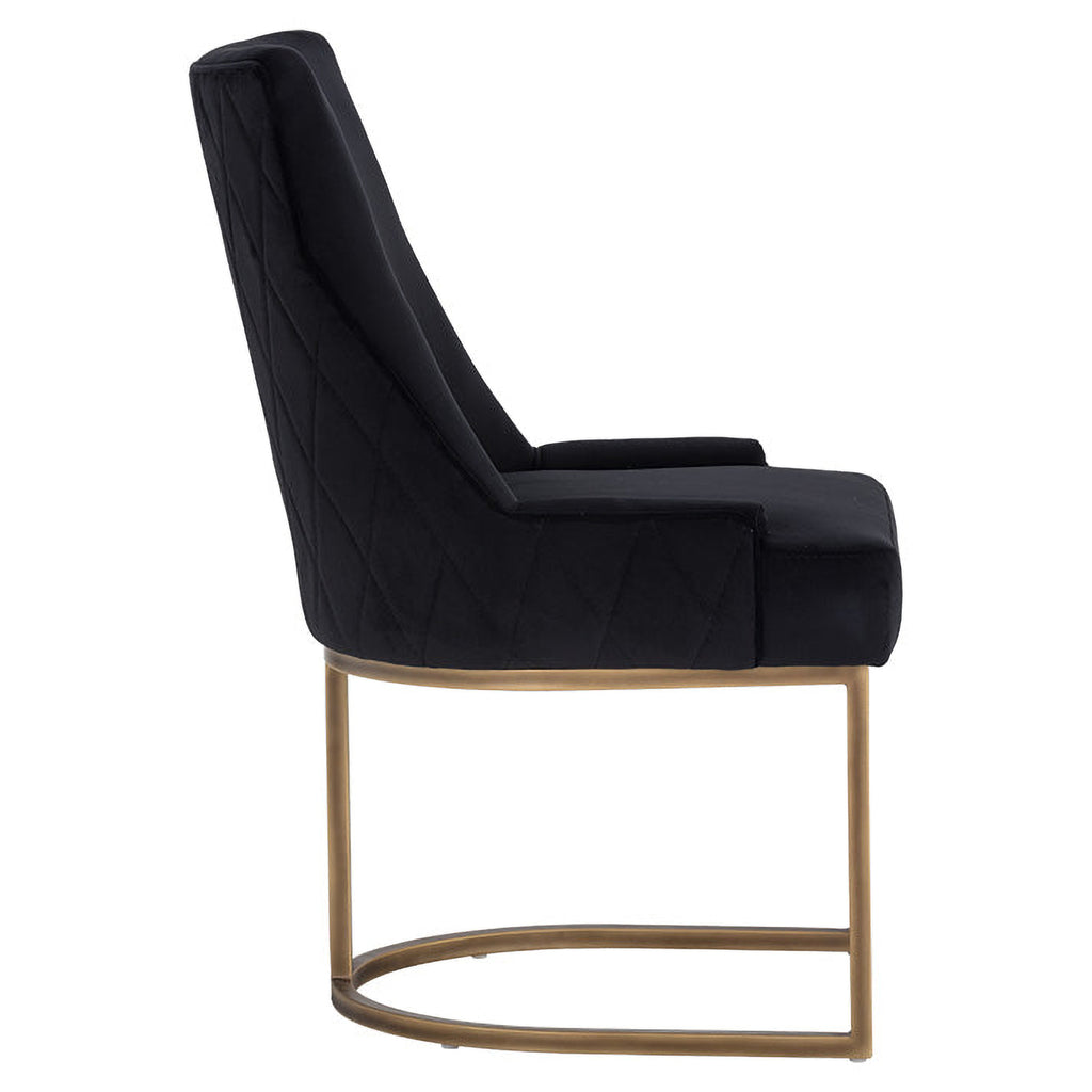 This dining chair offers transitional elegance. Features a beautifully sculpted seat in our soft abbington black fabric, with a rustic bronze cantilever frame. A diamond stitched pattern on the exterior seatback adds a touch of beauty to complete the look.