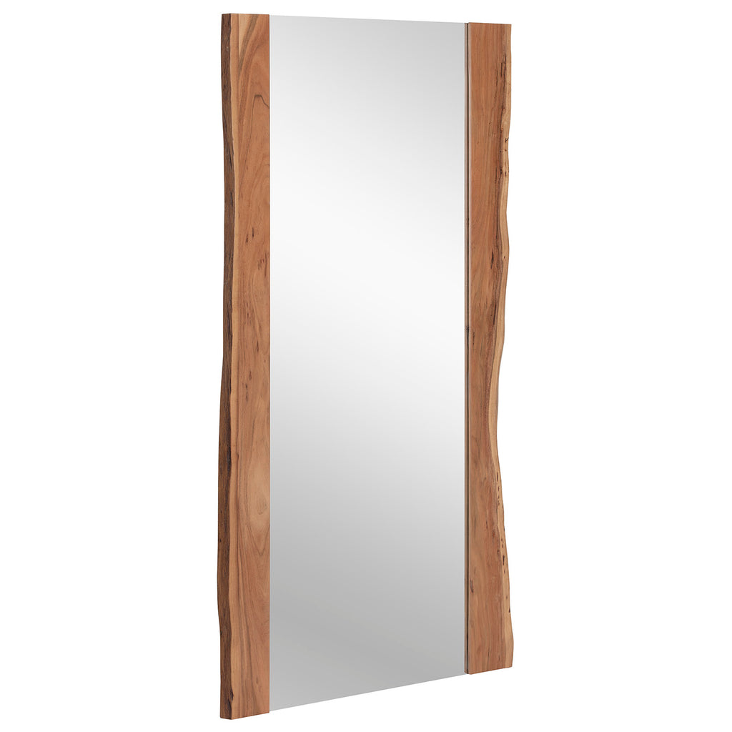 For a sense of rustic glamour, this floor mirror features a live-edge frame crafted from acacia wood in a grey finish.