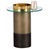 This stunning end table features a cylindrical Stainless Steel base in brown and gold finishes for a captivating contemporary look. Finished with a tempered clear glass and polished gold steel tray top.Suitable for residential and commercial spaces.