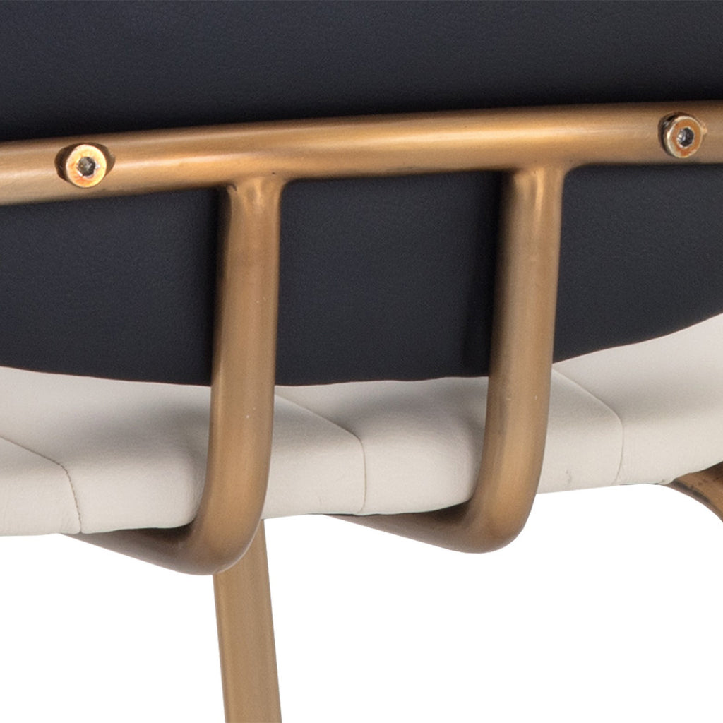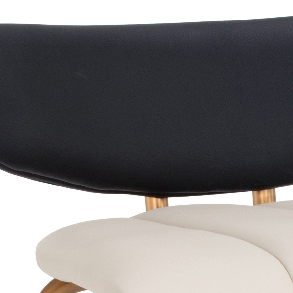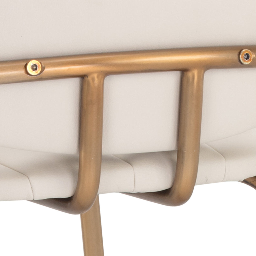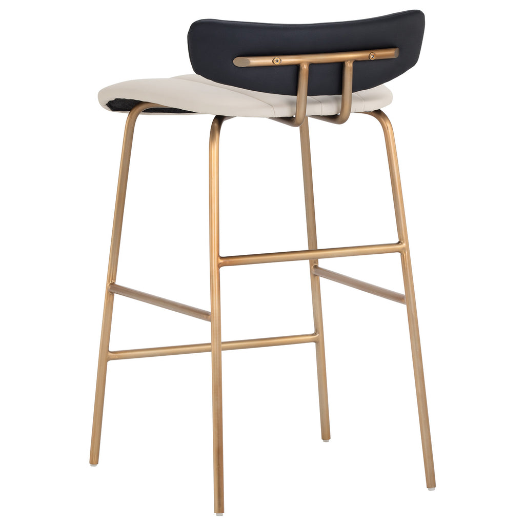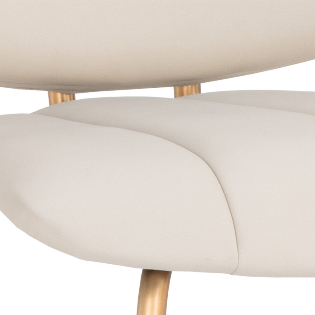A chic counter stool featuring a channel tufted seat and a low profile seatback in dillon cream faux leather. A brushed gold stainless steel frame completes this feminine look. Also available with a contrasting dillon black faux leather seatback and dillon cream faux leather seat. Suitable for various dining, kitchen and bar spaces of all sizes.