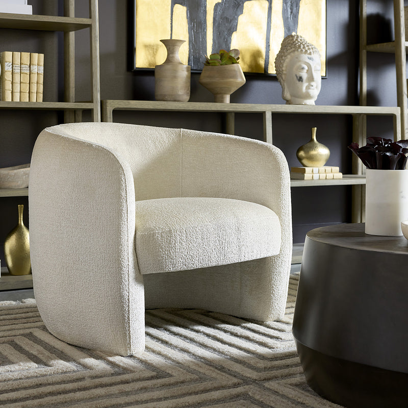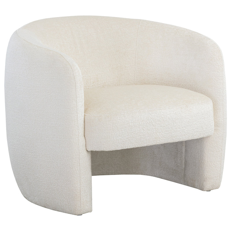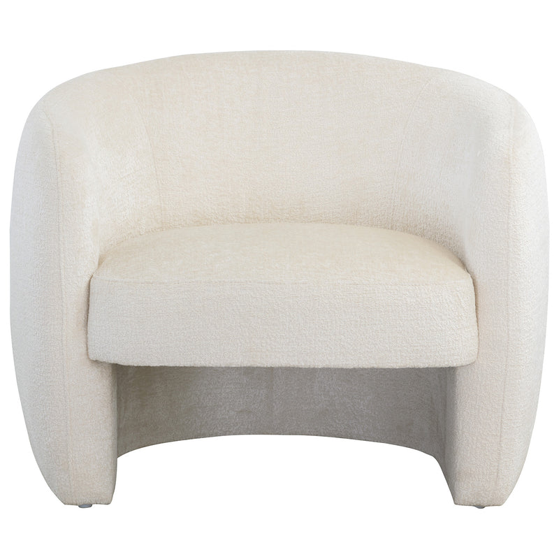 Add a stylish flair to any contemporary living space with this curved lounge chair. Features a sculptural frame that is fully upholstered in bergen french blue or ivory fabric.