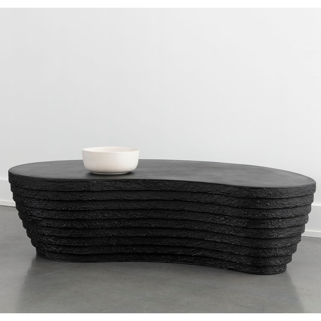 The Mojave Coffee Table brings a stylish edge to any space. A large, smooth tabletop gives way to richly textured ridging on the base.