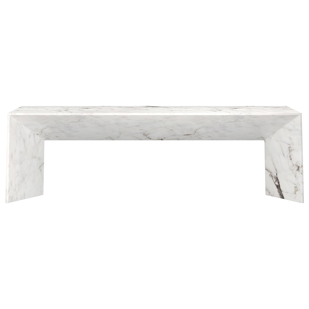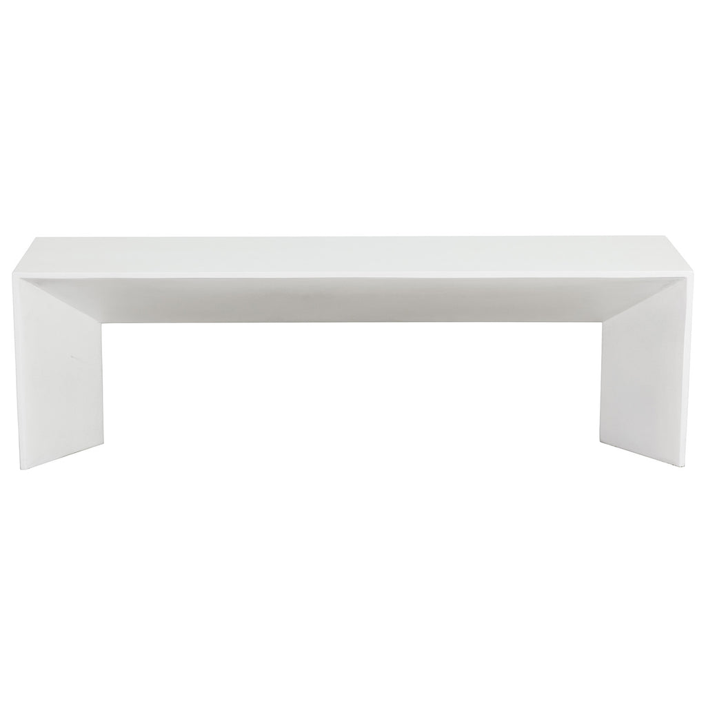 Simple and refined, this concrete bench has sharp lines that create visual interest towards the inner frame.