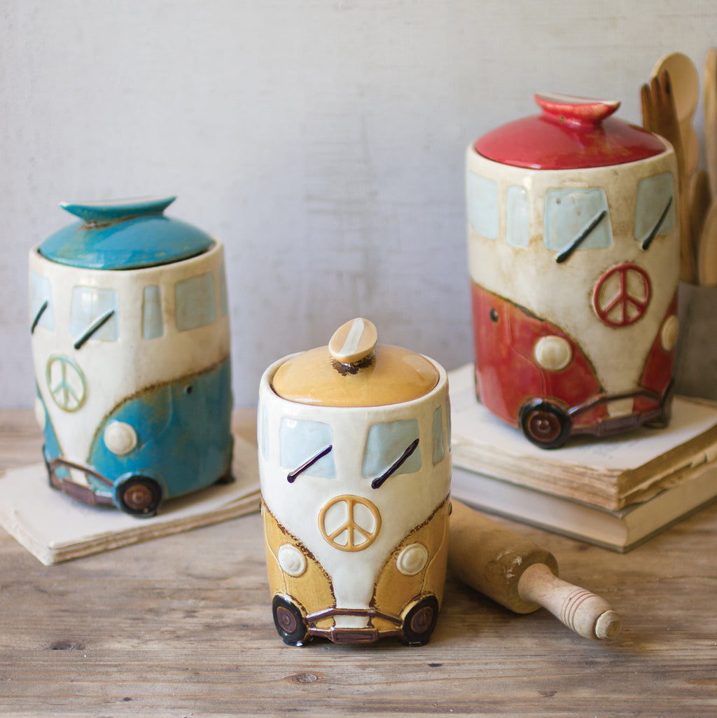 Enjoy life one wave at a time with these fun canisters with surfboard handles. Perfect for holding snacks and keepsakes.
