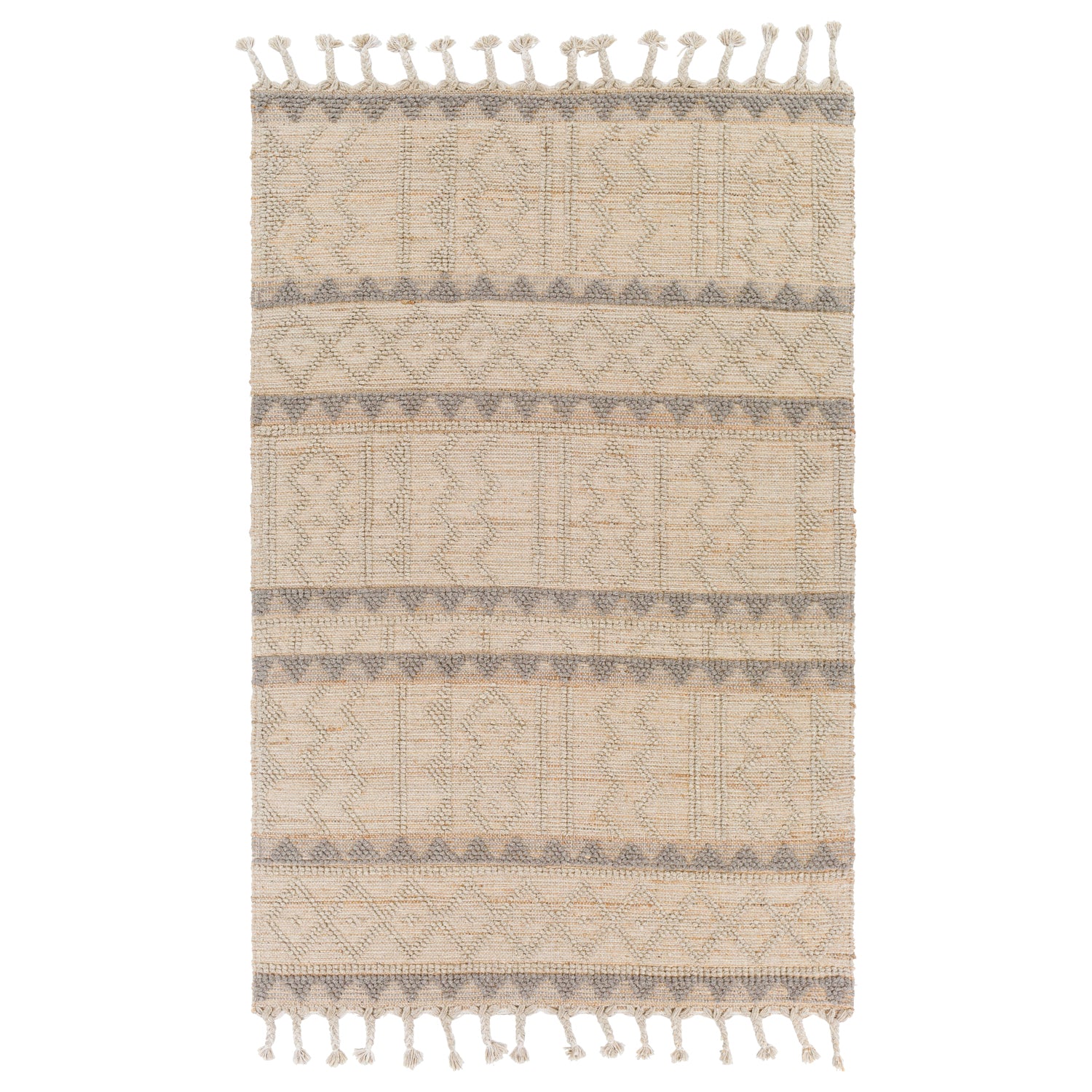 • Hand Woven, Low Pile, Tassel Detail