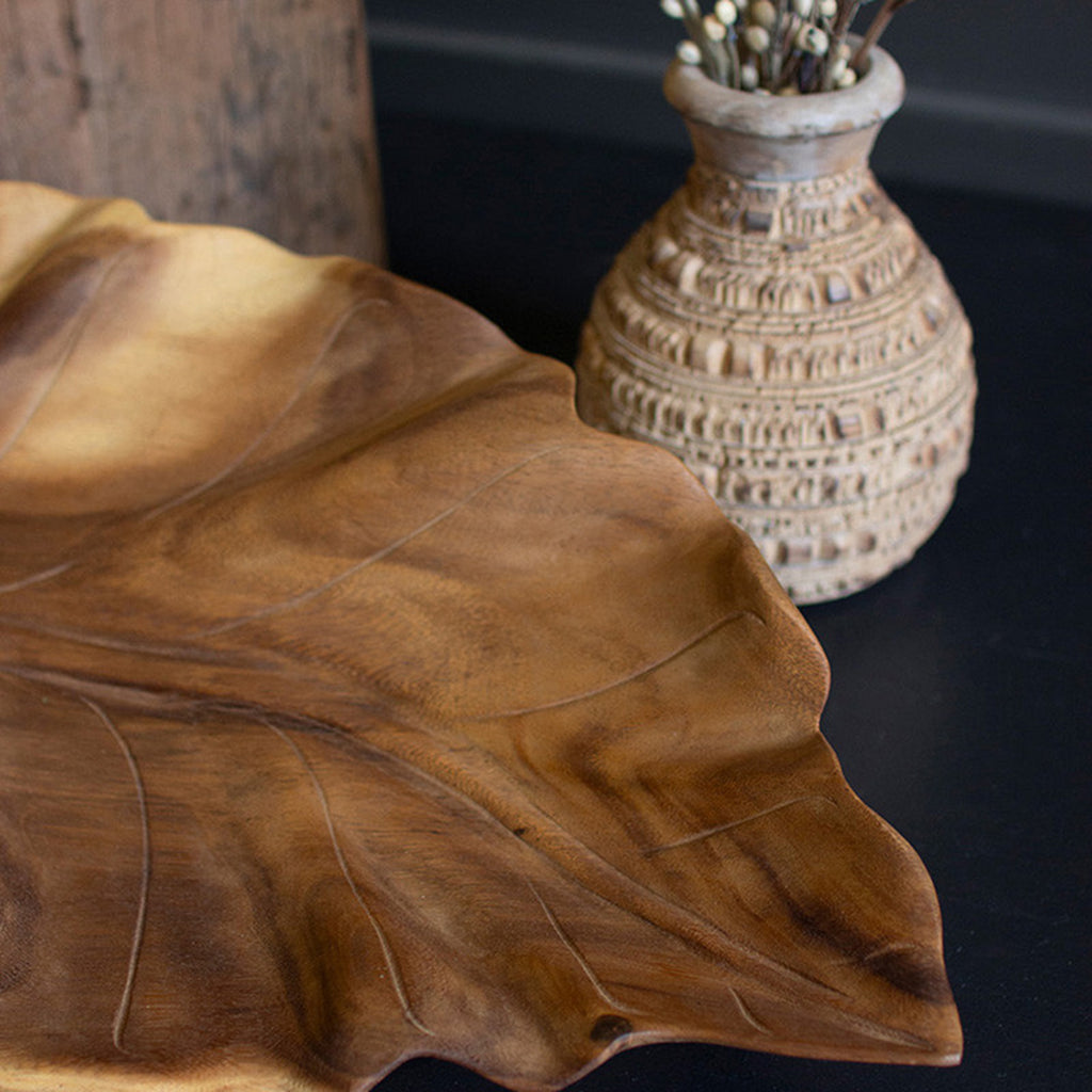 Display all your autumn decorations or use this leaf tray as your Thanksgiving centerpiece. Made in Indonesia, it suits all decor styles and purposes.