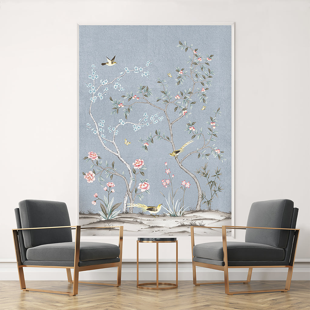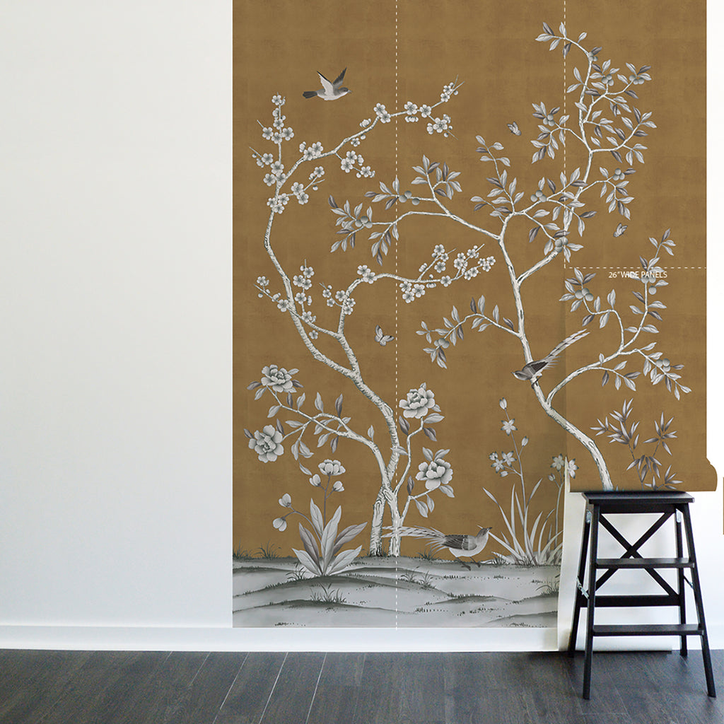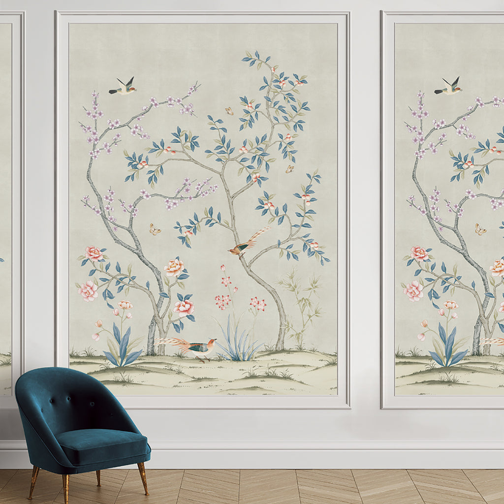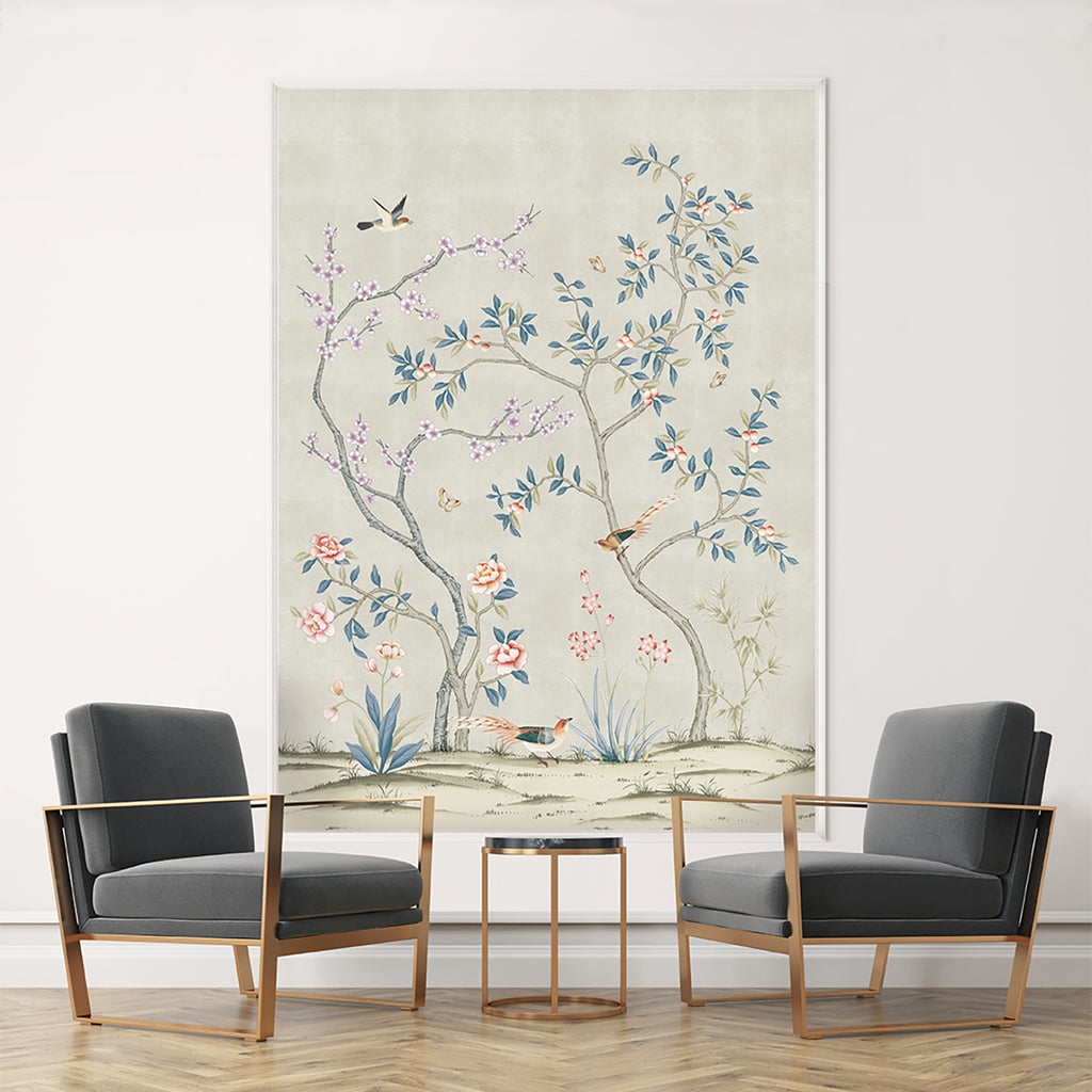 If your love for all things Chinoiserie wallpaper is here, now, and forever, look no further than these gorgeous removable Tempaper Chinoiserie Garden Peel & Stick Wall Murals. Available in both metallic and non-metallic backgrounds, each elegant design was hand-painted by our artist in Shanghai who perfectly captures the romance of a bygone era. Garden is available in neutral, silver, pink blush, green, light blue, gold, dark teal, navy, deep teal, and white colorways.