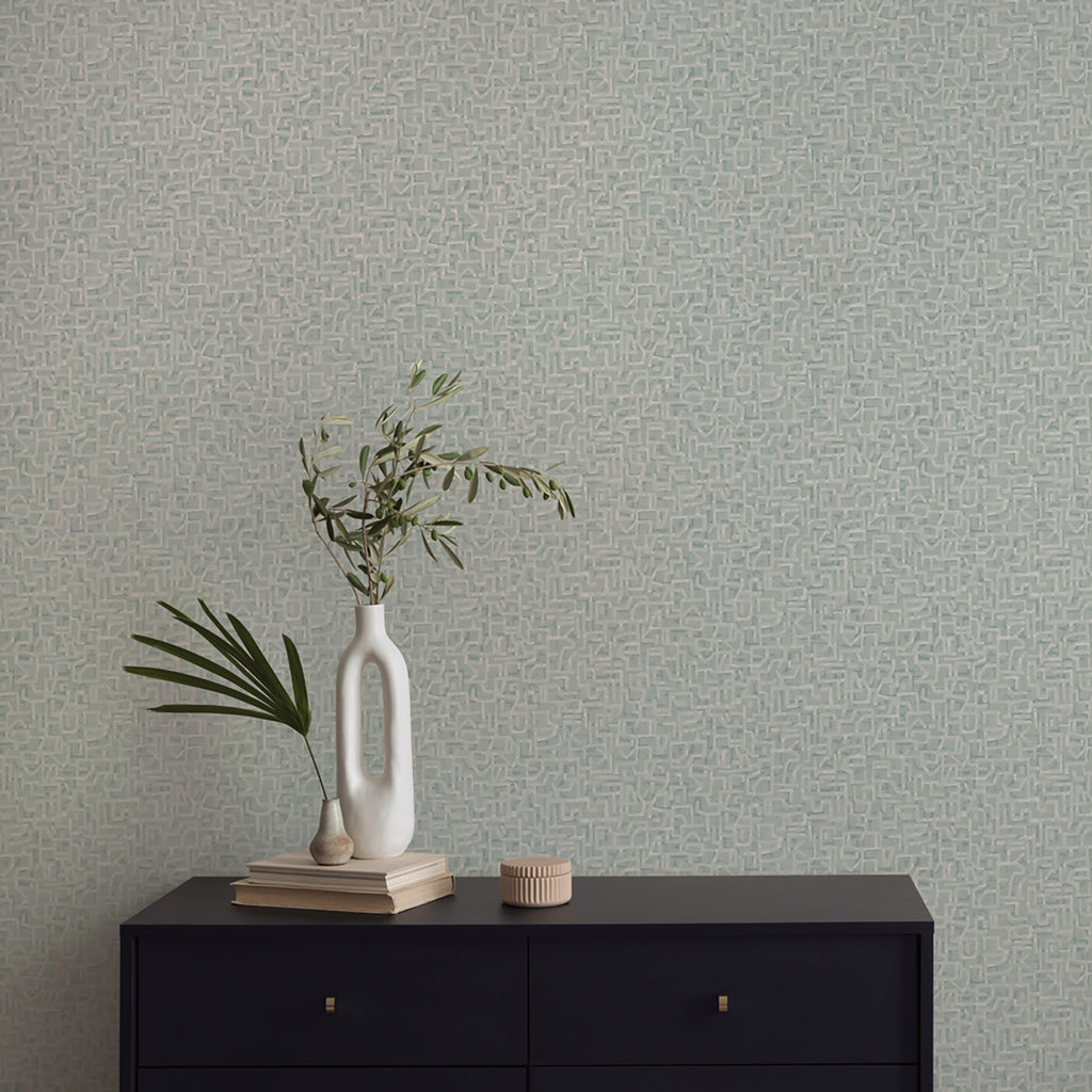 Unlock your signature style. This woven non-pasted wallpaper features an intricate, ornate design, bringing timeless texture and movement into your interior. Tempaper Glyph Geo Non-Pasted Wallpaper is available in the following colorways: neutral, gray, and mint green.