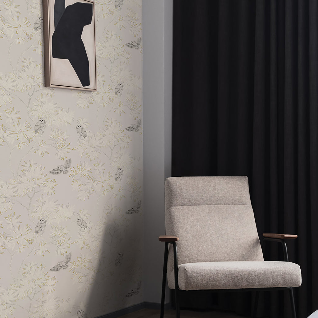 This woodland unpasted wallpaper features a parliament of owls that brings wisdom and wonder into any room. Refresh whimsical nurseries, pretty powder rooms, sophisticated foyers, and more. Tempaper Parliament Non-Pasted Wallpaper is available in the following colorways: neutral, light teal, navy blue, and white.
