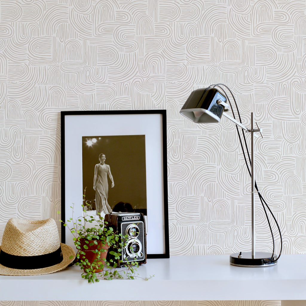 Inspired by swirling sand dunes and sea currents, this intriguing freehand design creates captivating yet calming coastal living spaces. Alluring curves and swirls pull you in and hold your attention, stirring up endless design possibilities. Relax and go with the flow. This retro removable wallpaper helps you achieve restful interiors in 3 simple steps. Peel, stick and embrace your new style. Shop Swell, available in 3 colorways: neutral, black, and teal.