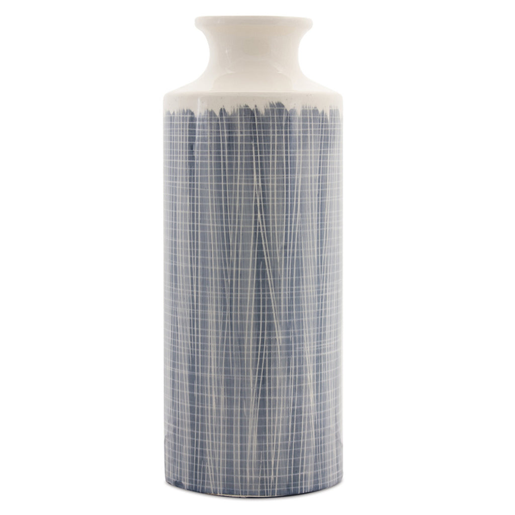 Enhance your home decor with this elegant Glazed Decorative Terracotta Vase. Standing almost two feet tall, this piece would make the perfect floor vase for an entryway or corner nook. The cool blue tones paired with the ivory criss-cross pattern is the perfect combination to create a stunning display. Complete the look by adding a bunch of dried or faux florals.