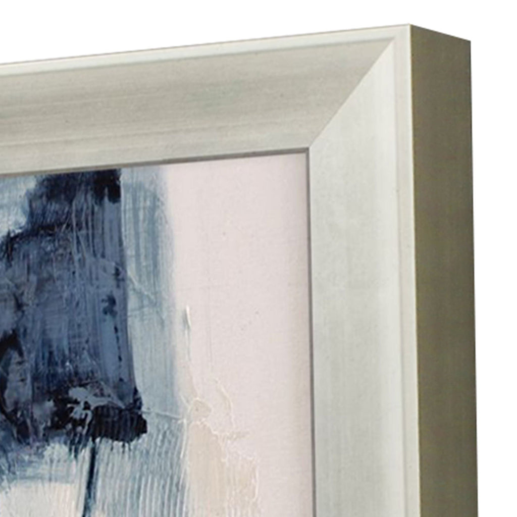 Exclusive hand painted canvas. Hand stretched and framed in a silver leaf wood shadow box style moulding.
