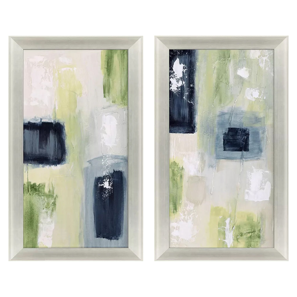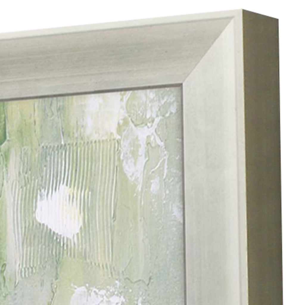 Exclusive hand painted canvas. Hand stretched and framed in a silver leaf wood shadow box style moulding.