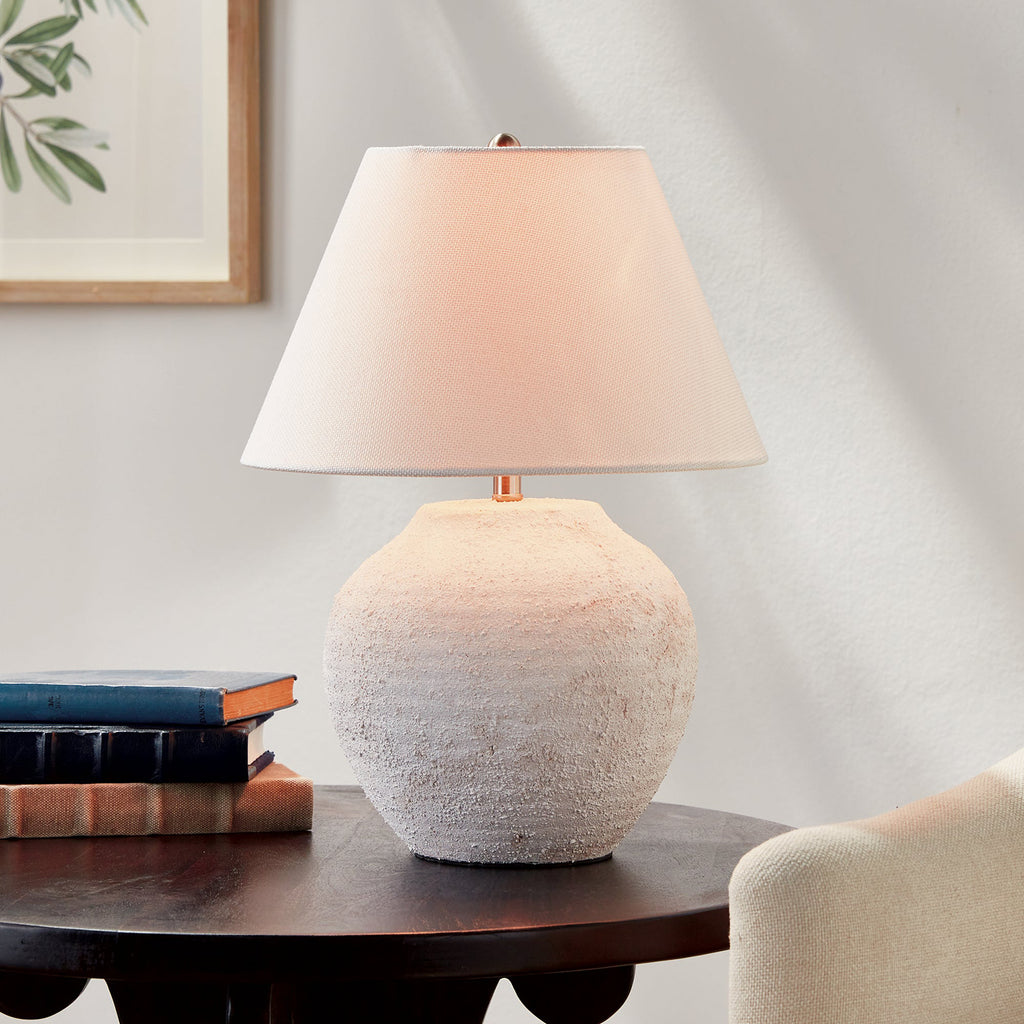 With a cold-paint textured body and light linen shade, this lamp is a handsome fixture. Just under 15 inches tall, it's perfect for home office desk, side table or even a narrow console or dresser.