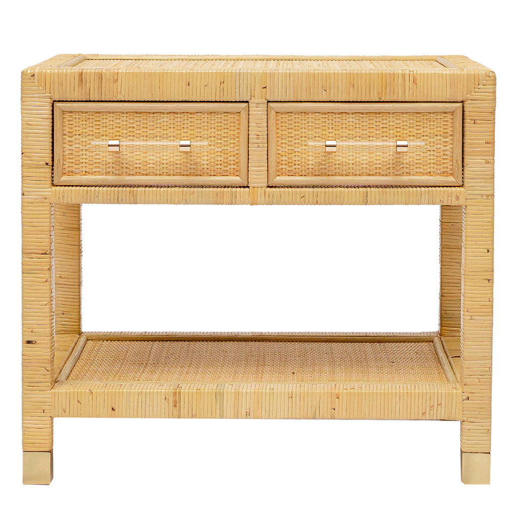 The TOV Furniture Amara Nightstand is the epitome of relaxed California-cool energy. This piece offers great storage and style with its high-quality wrapped rattan design, brass-capped legs and lucite hardware. Its natural, earthy look complements a wide variety of decor styles, while the rattan also adds a touch of warmth and texture to any space.