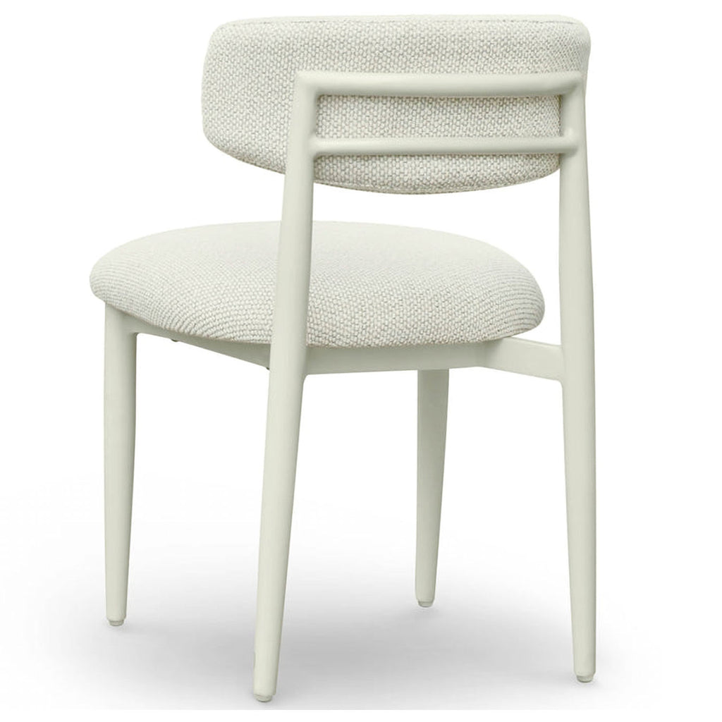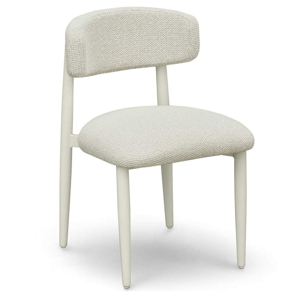 Elevate your outdoor dining experience with the Annika Textured Outdoor Dining Chair, a perfect harmony of comfort and style. Available as a side chair or armchair and offered in a black or cream outdoor-safe textured upholstery, this chair effortlessly blends sophistication with durability. Its rust-resistant aluminum frame ensures lasting strength, while the plush design invites you to linger longer, creating moments that turn meals into memories.