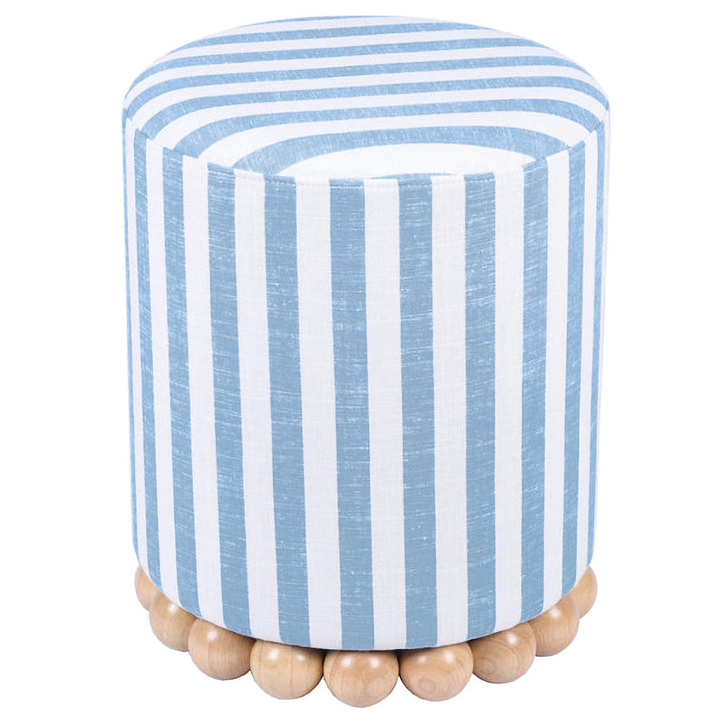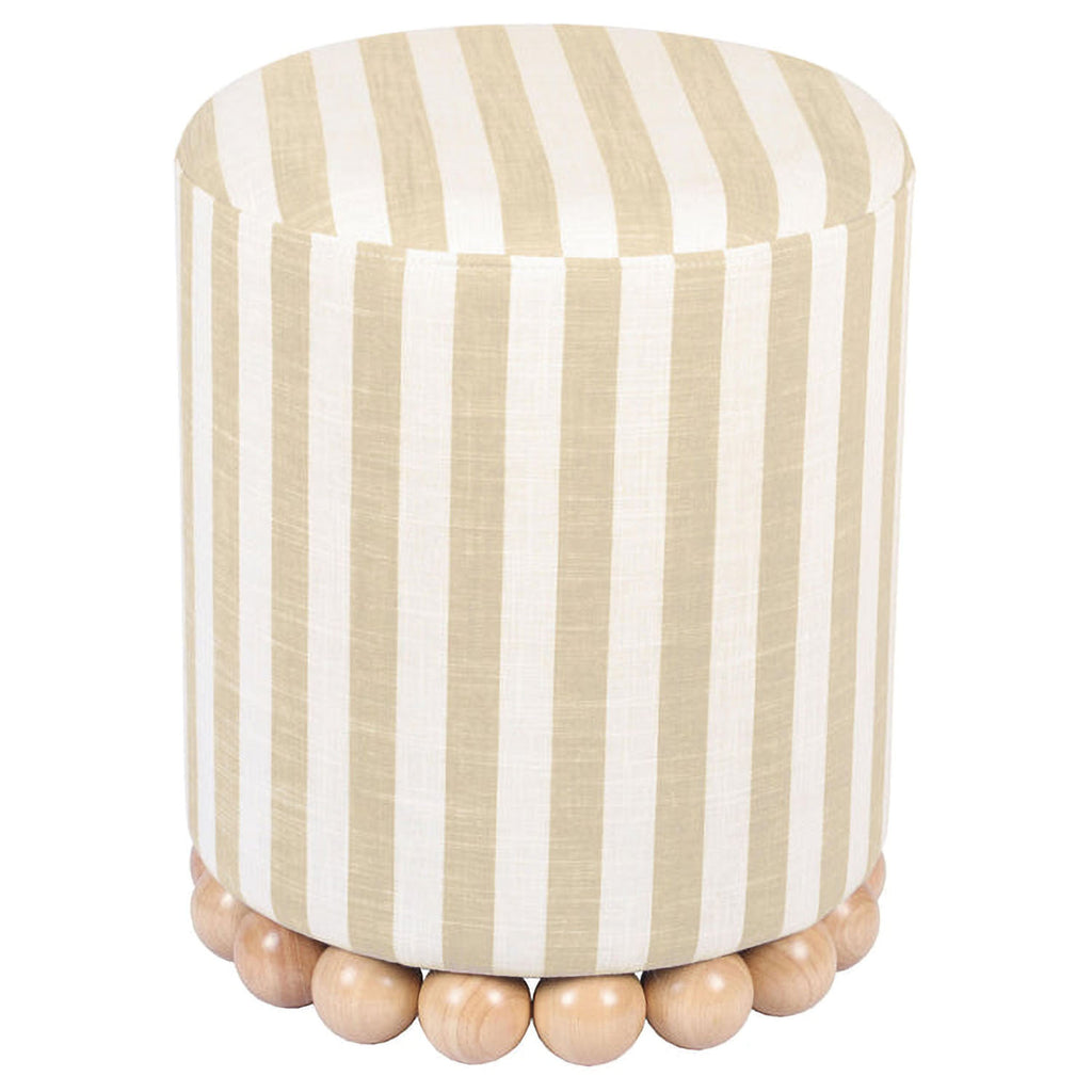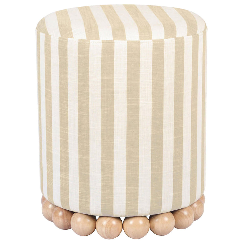 Introducing the Dex Ottomans, a charming and whimsical addition to your space that beautifully blends fresh design with a vibrant tropical vibe. The solid wood spherical orbs at the base create a striking visual element, ensuring a sturdy yet stylish foundation. Choose from playful washed linen-style cabana stripes, eco-friendly upcycled fabric, or bold leopard print jacquard to infuse personality into any room. Perfect for extra seating or as a chic footrest, these ottomans are available in a delightful palette of beige or pastel blue linen, faded blue or cream upcycled fabric, and taupe or olive green leopard prints. Transform your space with a touch of fun and flair!