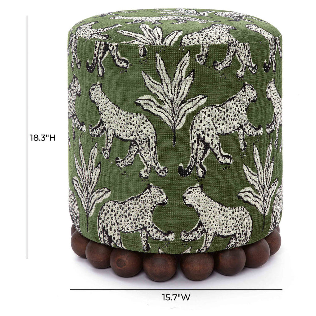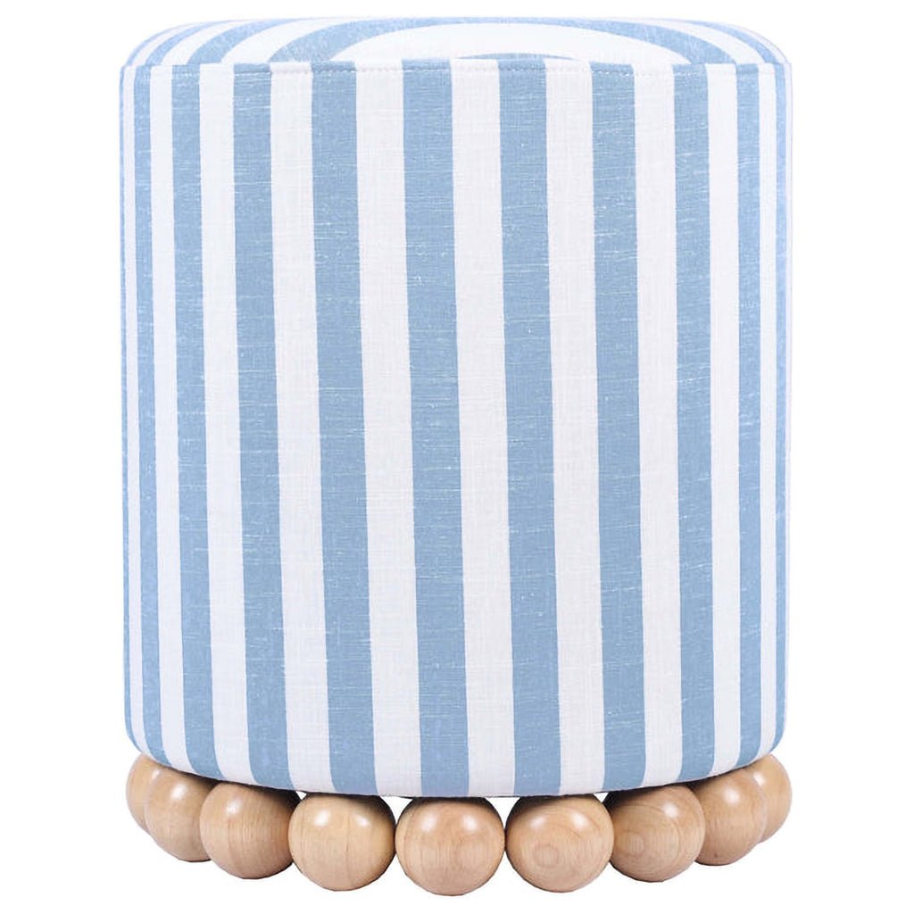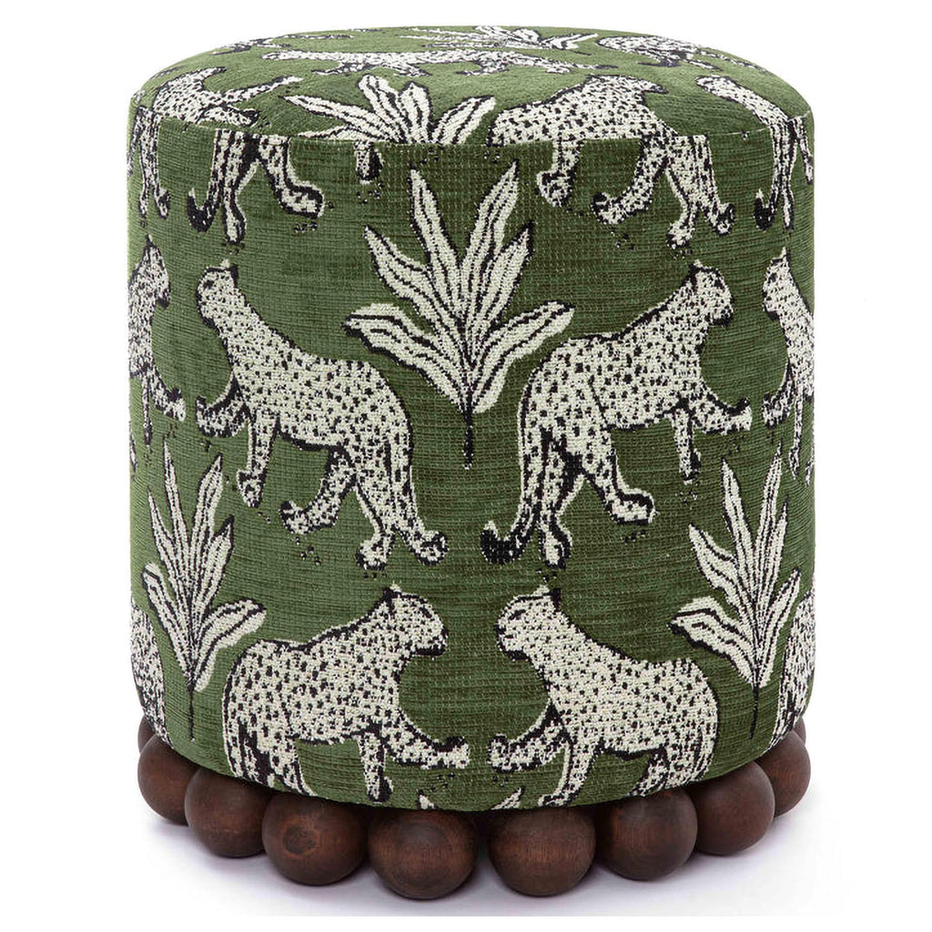 Introducing the Dex Ottomans, a charming and whimsical addition to your space that beautifully blends fresh design with a vibrant tropical vibe. The solid wood spherical orbs at the base create a striking visual element, ensuring a sturdy yet stylish foundation. Choose from playful washed linen-style cabana stripes, eco-friendly upcycled fabric, or bold leopard print jacquard to infuse personality into any room. Perfect for extra seating or as a chic footrest, these ottomans are available in a delightful palette of beige or pastel blue linen, faded blue or cream upcycled fabric, and taupe or olive green leopard prints. Transform your space with a touch of fun and flair!