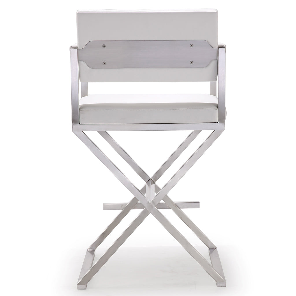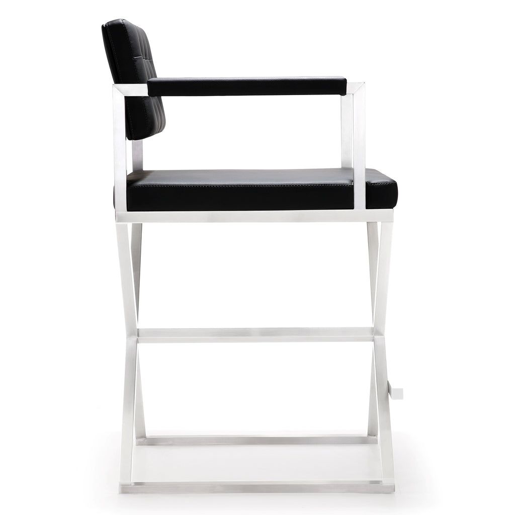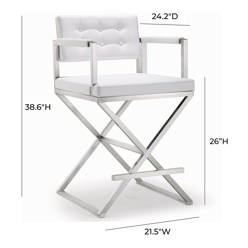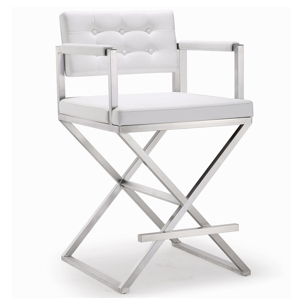 Furnish your kitchen or bar area in contemporary style with the Director stool from TOV. The solid stainless steel frame provides a sturdy base, while the plush extra deep seat and footrest ensure maximum comfort. The combination of angles and gentle curves gives this stool an eye-catching appearance, while the neutral color allows it to match well with any decor.