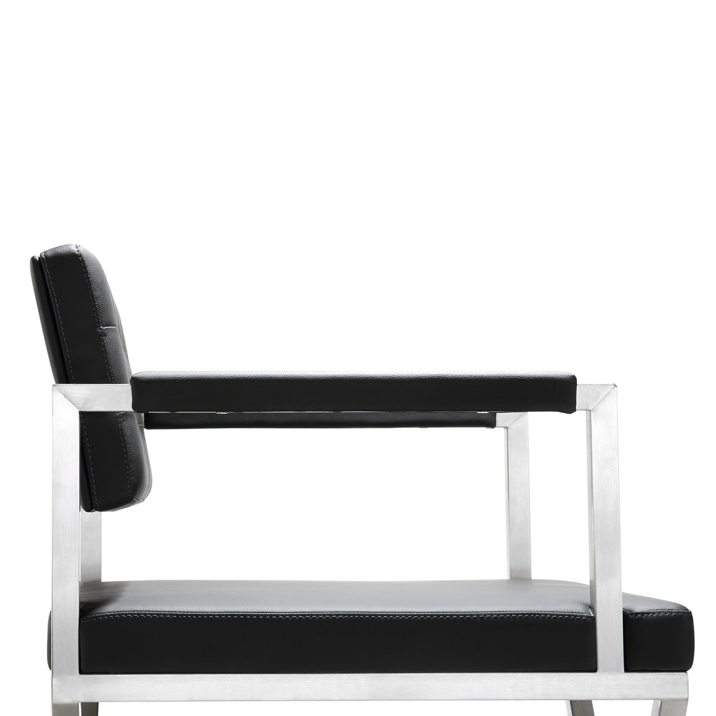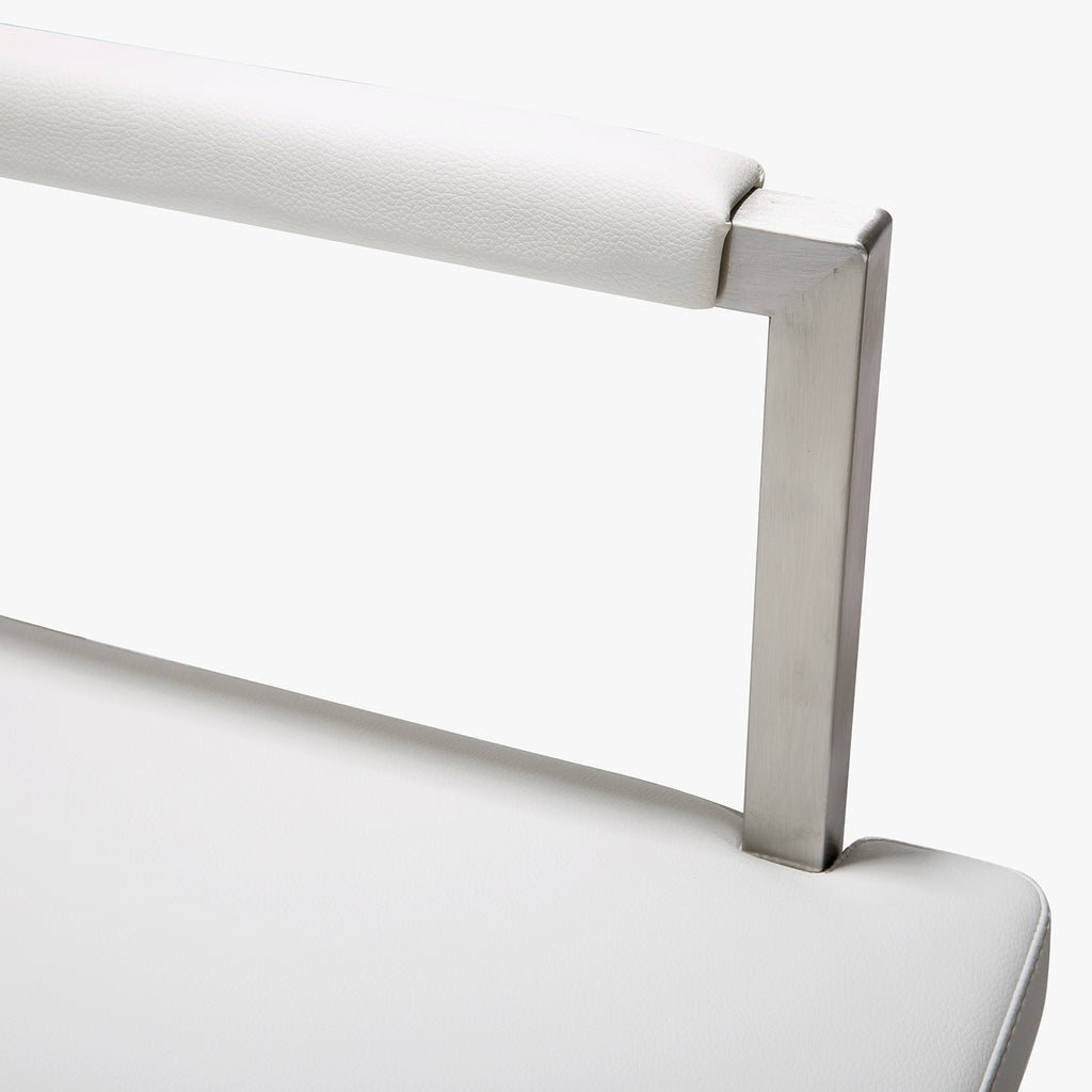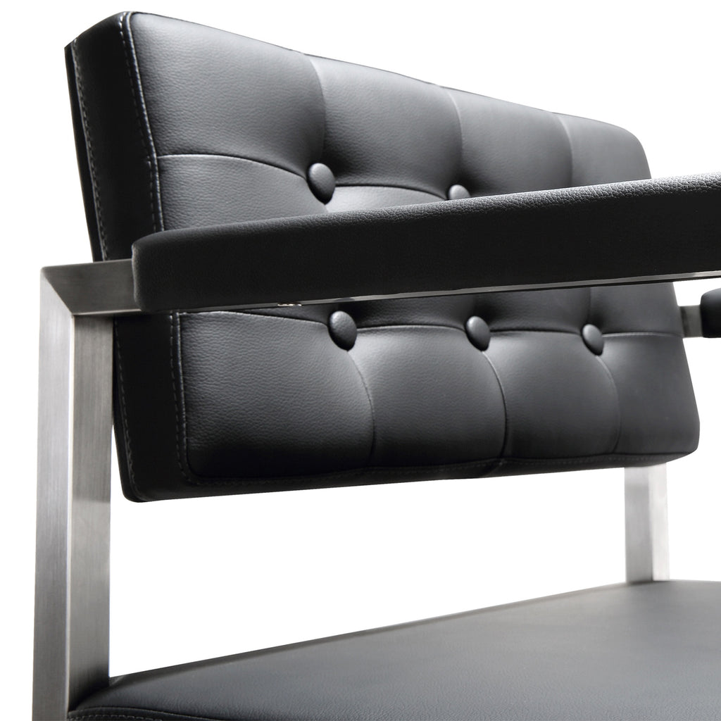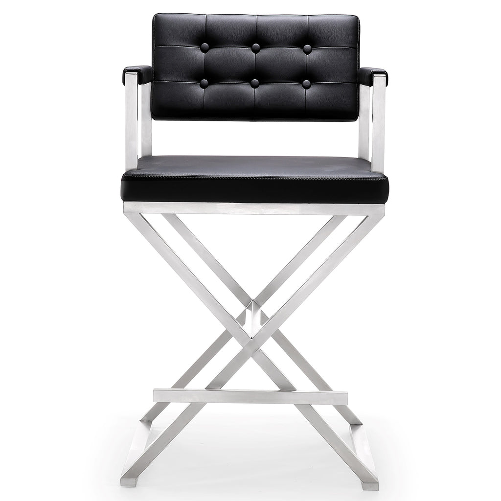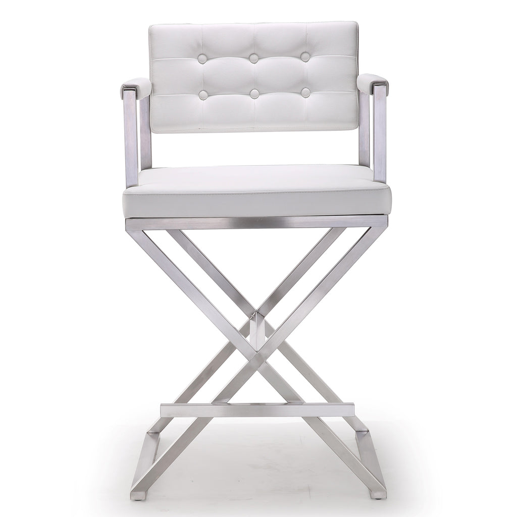 Furnish your kitchen or bar area in contemporary style with the Director stool from TOV. The solid stainless steel frame provides a sturdy base, while the plush extra deep seat and footrest ensure maximum comfort. The combination of angles and gentle curves gives this stool an eye-catching appearance, while the neutral color allows it to match well with any decor.