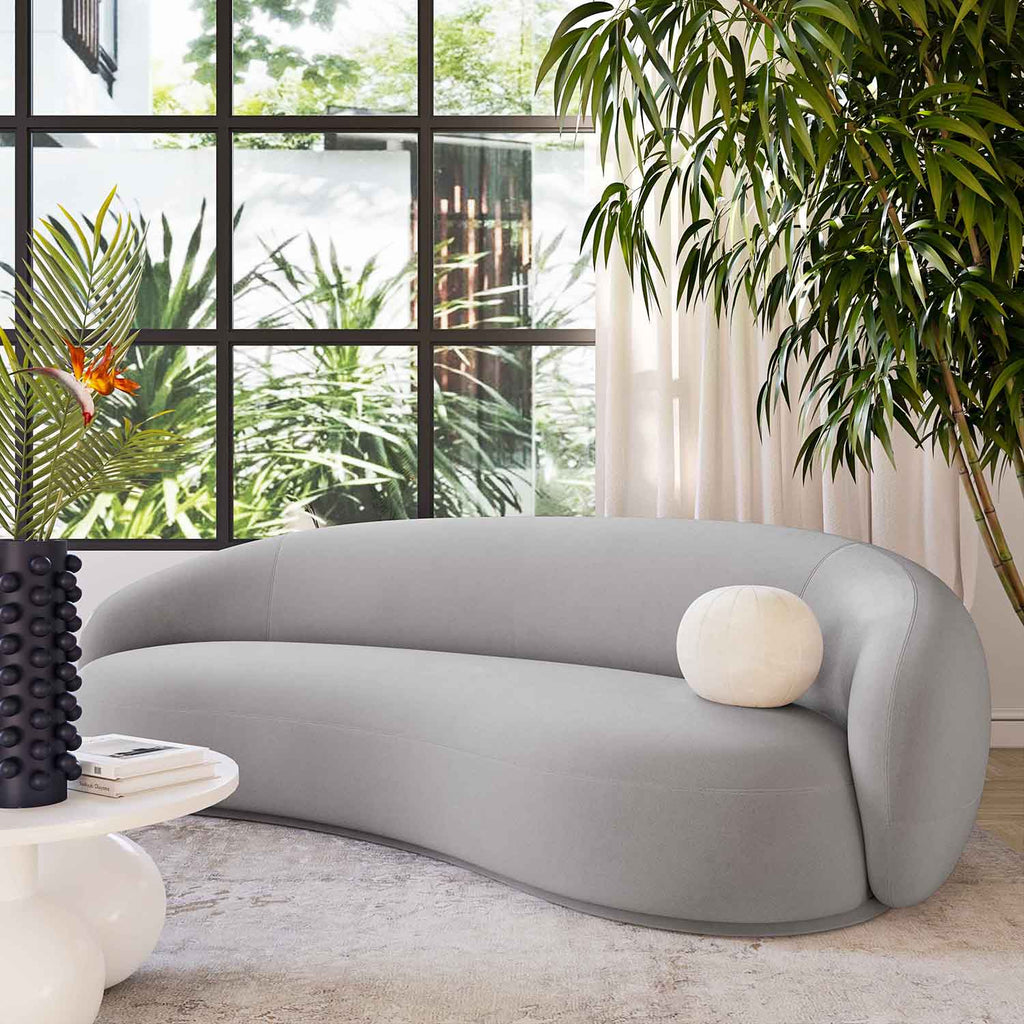 With its curved silhouette, plush upholstery and modern design, the Kendall sofa will elevate any space with a luxe, contemporary feel. Generous fiber-wrapped foam padding and a sturdy pine frame offer long-lasting comfort and support. Available in multiple colors.