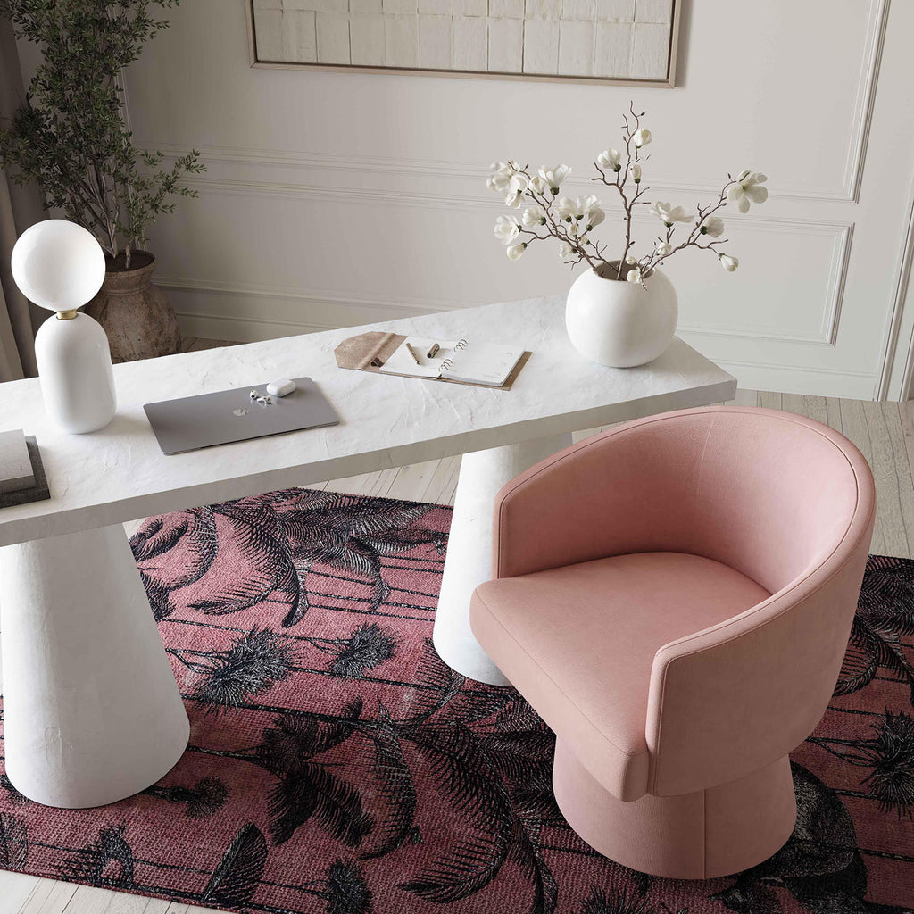 We've developed a deep crush on the Kristen Upcycled Chenille Rolling Desk Chair, a stylish and sustainable addition to your workspace. With our commitment to sustainability, we offer this chair in five chic colors: taupe, pink, light green, black, and cream, crafted from recycled fabric. With its sculptural form and fully upholstered frame, it offers the flexibility to complement any room style while elevating the aesthetic of your office space.