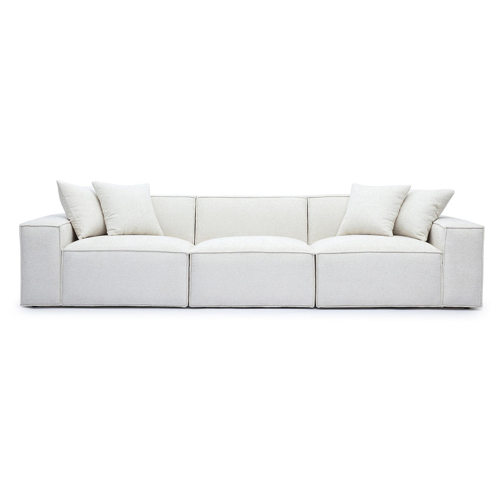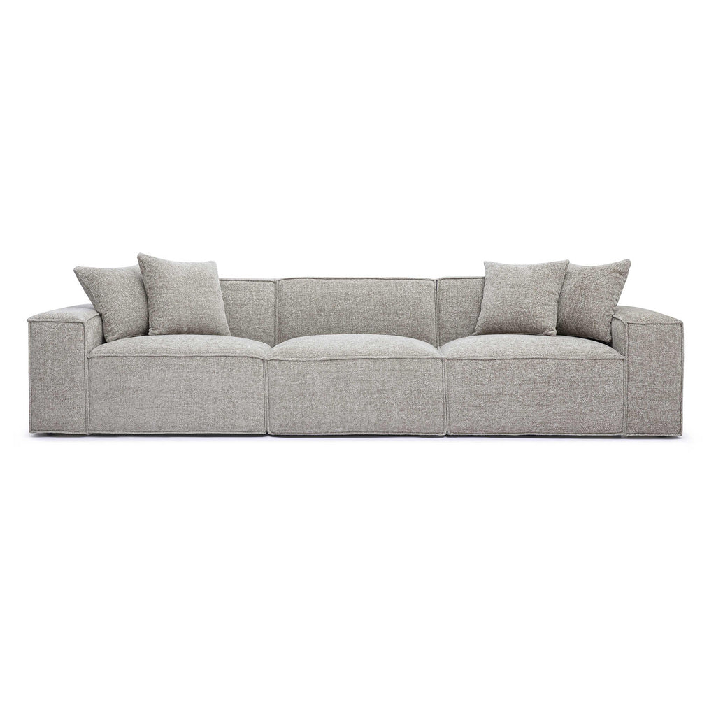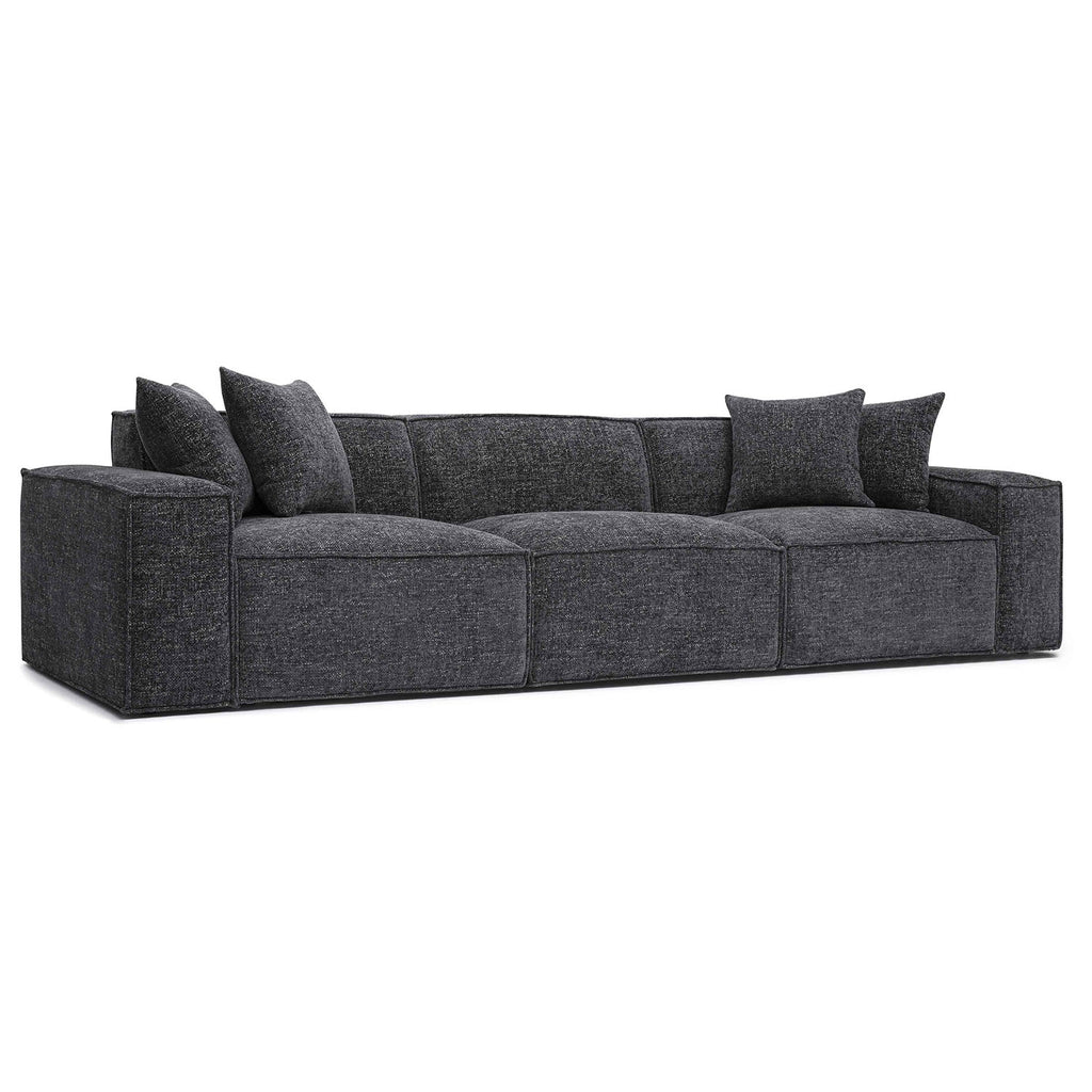 The Mindy Modular collection delivers cozy texture and standout style with its soft chenille basketweave, thick stitching, and plush accent pillows. Built for comfort with deep seating and endless ways to configure, it's available in cream, charcoal, or taupe to suit your space.