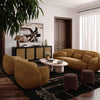 Introducing TOV Furniture Misty: This textural set, sofa and accent chair, is a welcome addition to any home. It doesn't get cozier than this mid-century inspired design, topped with coordinating pill-shaped pillows and upholstered in a delicious cream or brown boucle!