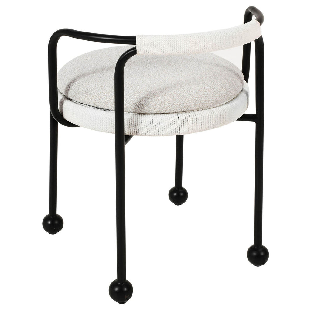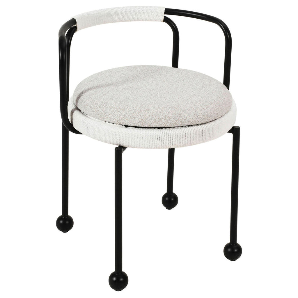 Embrace outdoor dining in style with the Pansy Cream Outdoor Dining Chair, where charm meets durability. Featuring adorable ball feet and handwoven roping on the seat, this chair adds a playful touch to your outdoor space. Its sturdy iron frame ensures lasting comfort and support, making it perfect for long meals and laughter-filled gatherings.