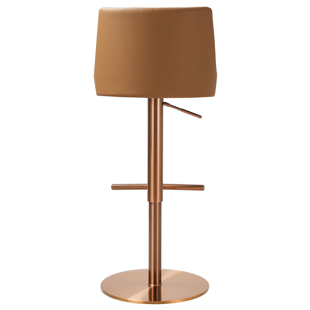 TOV Furniture Reagan Cafe Au Lait Performance Vegan Leather and Houndstooth Adjustable Swivel Stool