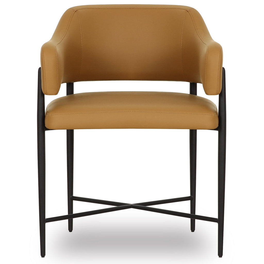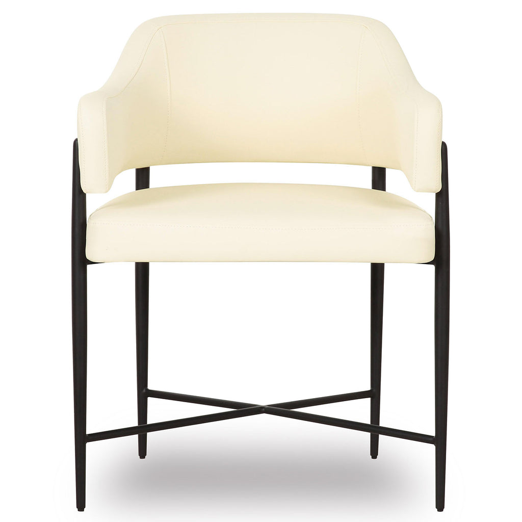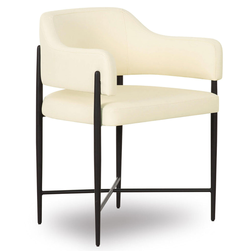 Transform your dining space with the stunning Sezanne Dining Chair, offered in Cream Textured Boucle, and Cream or Tan Vegan Leather. Featuring a black iron finished metal frame, this art deco-inspired chair combines artsy flair with modern usability, offering excellent comfort and a polished look that complements any trendy dining room. The highly textured, liquid-repellent fabric and easy-to-clean vegan leather make it as practical as it is stylish.