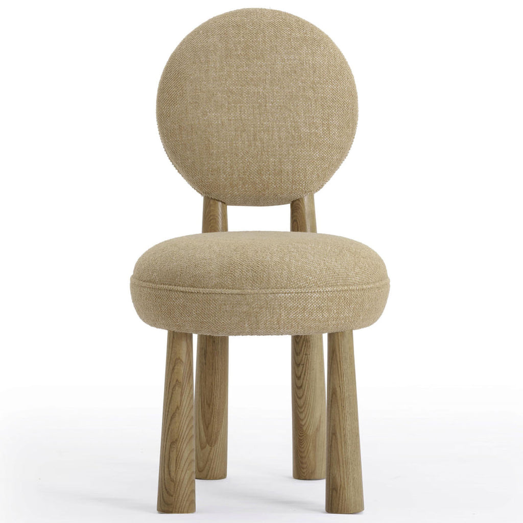 The Sulley Dining Chair pairs playful character with functional design, featuring solid ash wood legs and a sturdy cushioned backrest. Available in textured basketweave or soft chenille, it brings a hint of woodland whimsy to your table.