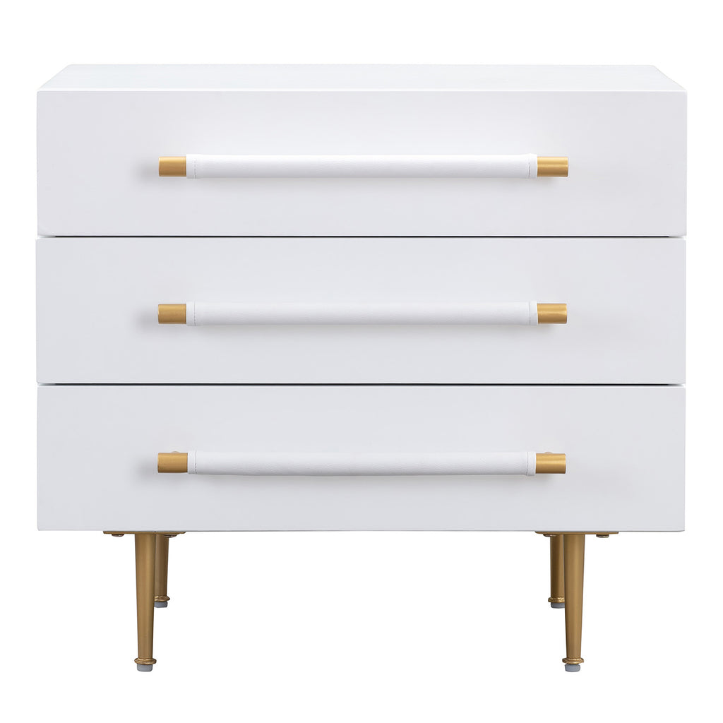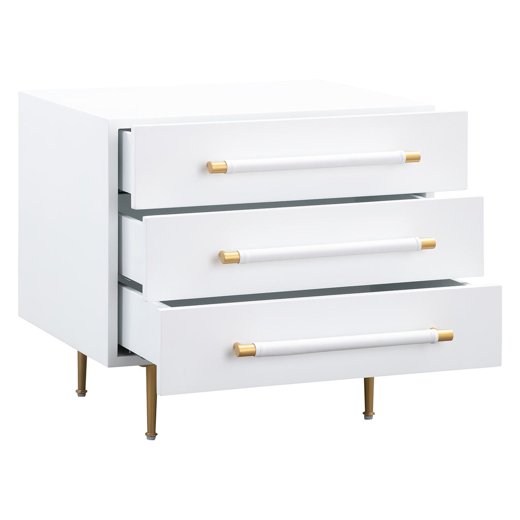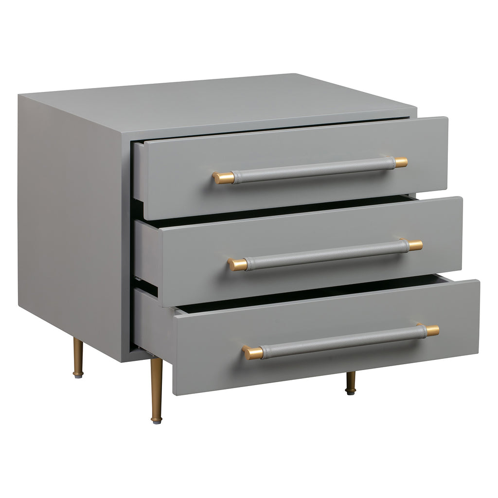 Simple yet brimming with understated elegance, the Trident nightstand offers modern appeal and stylish functionality. Featuring plenty of storage space for your essentials, soft-close drawers and brass accents.