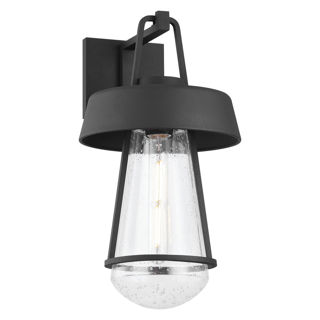 Casual, sophisticated, and little bit curious, express yourself with eclectic, artisan-made lighting by Troy. The Troy Brady exterior wall sconce features a clear glass shade rests within a Texture Black metal framework. The clean lines and smooth silhouette make a modern statement. Available as a one- or two-light option, Brady is a stylish way to add a warm glow to a variety of outdoor spaces.