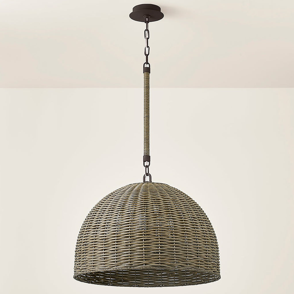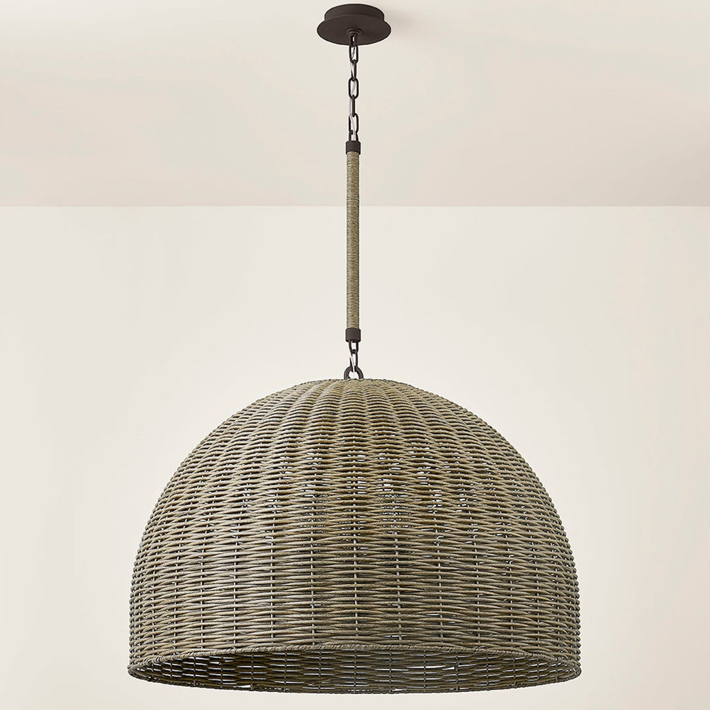 Cords of faux rattan are expertly wrapped to create the classic dome shape of the Troy Huxley chandelier and pendant. This fixture features an array of lights shining through the organically-inspired shade. Huxley creates a fresh and earthy focal point. SKU’s F2024-TBZ and F2034-TBZ are wet-listed for outdoor use; the rest of the family features genuine rattan and is intended for interior use only. *Due to the one-of-a-kind nature of the medium, exact colors and patterns may vary slightly from the image shown.