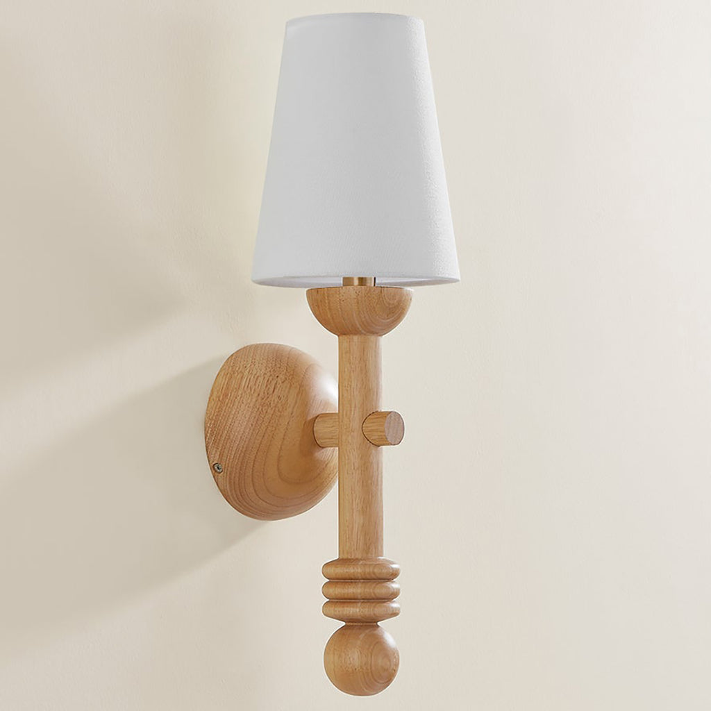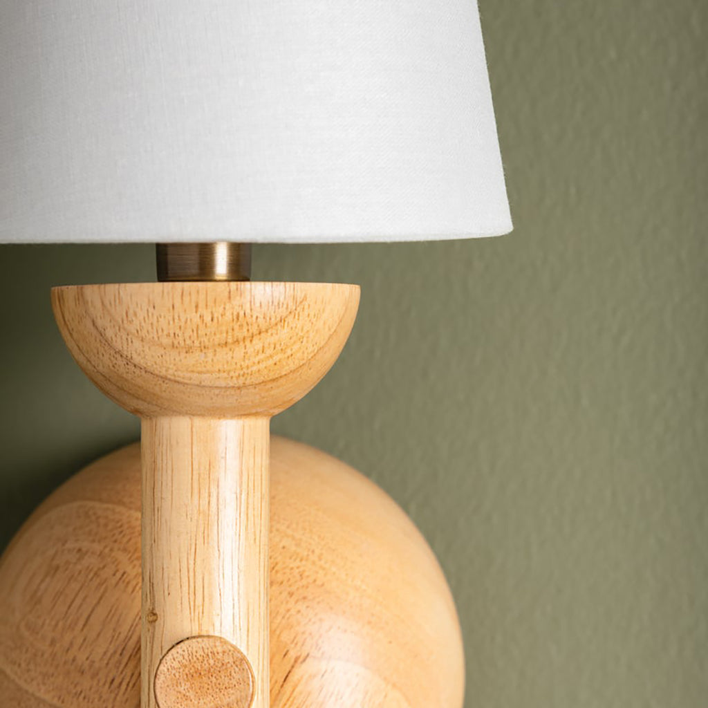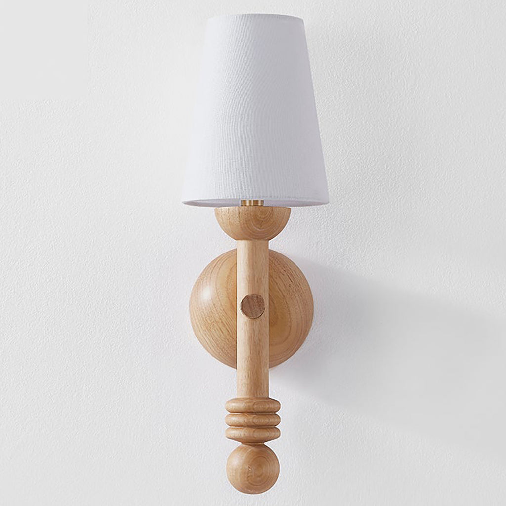 Inspired by folk art, this statement sconce has been carved from turned wood. The interplay of geometric forms creates a pop of interest while the petite proportions lend Troy Iver Wall Sconce versatility in various spaces. An off-white linen shade complements the overall natural, playful design ethos.