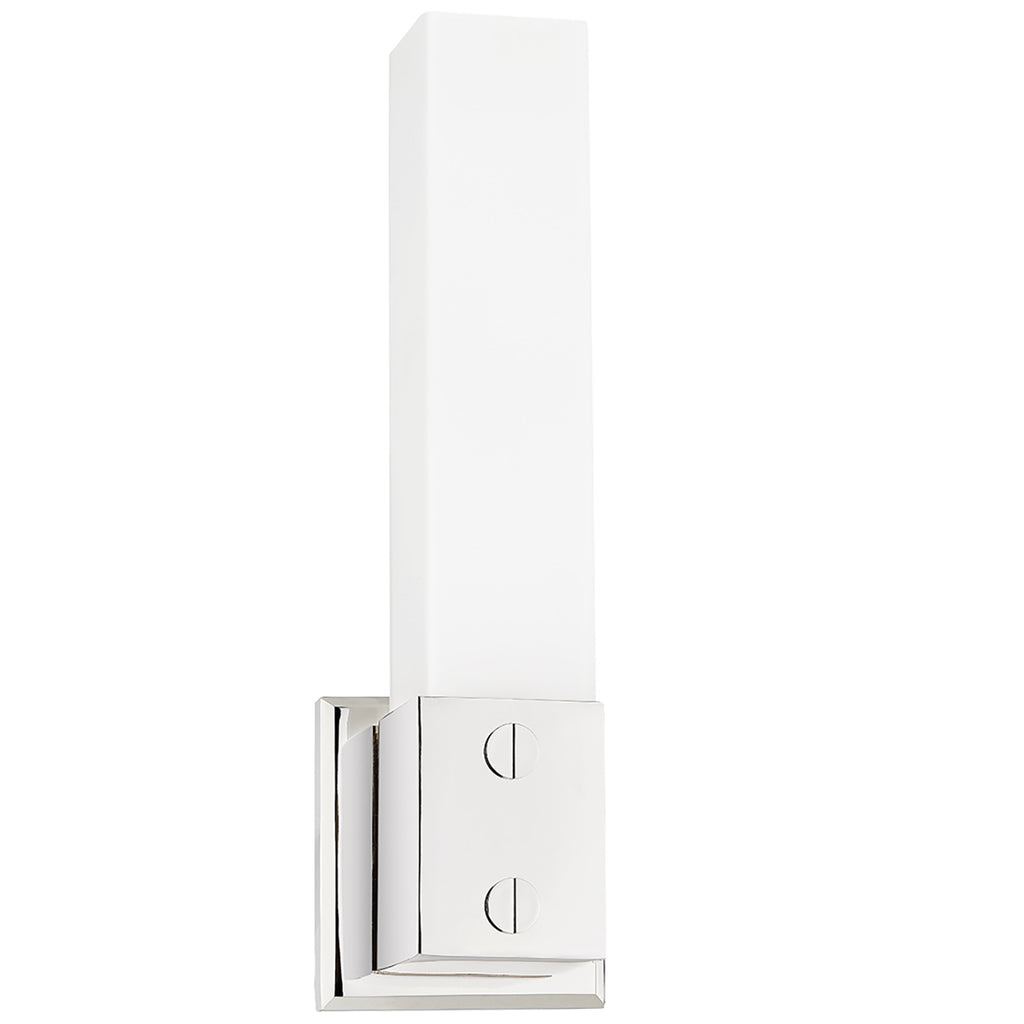 Troy Jonah Bath Vanity Light is the epitome of soft industrial design. The clean lines and defined shape of the sconce body are softened by the acid-etched glass and the beautiful jewelry-inspired hardware on the holder. The coordinating square backplate adds to this stylish sconce's fresh feel. Choose from a one- or two-light option in patina brass or polished nickel.