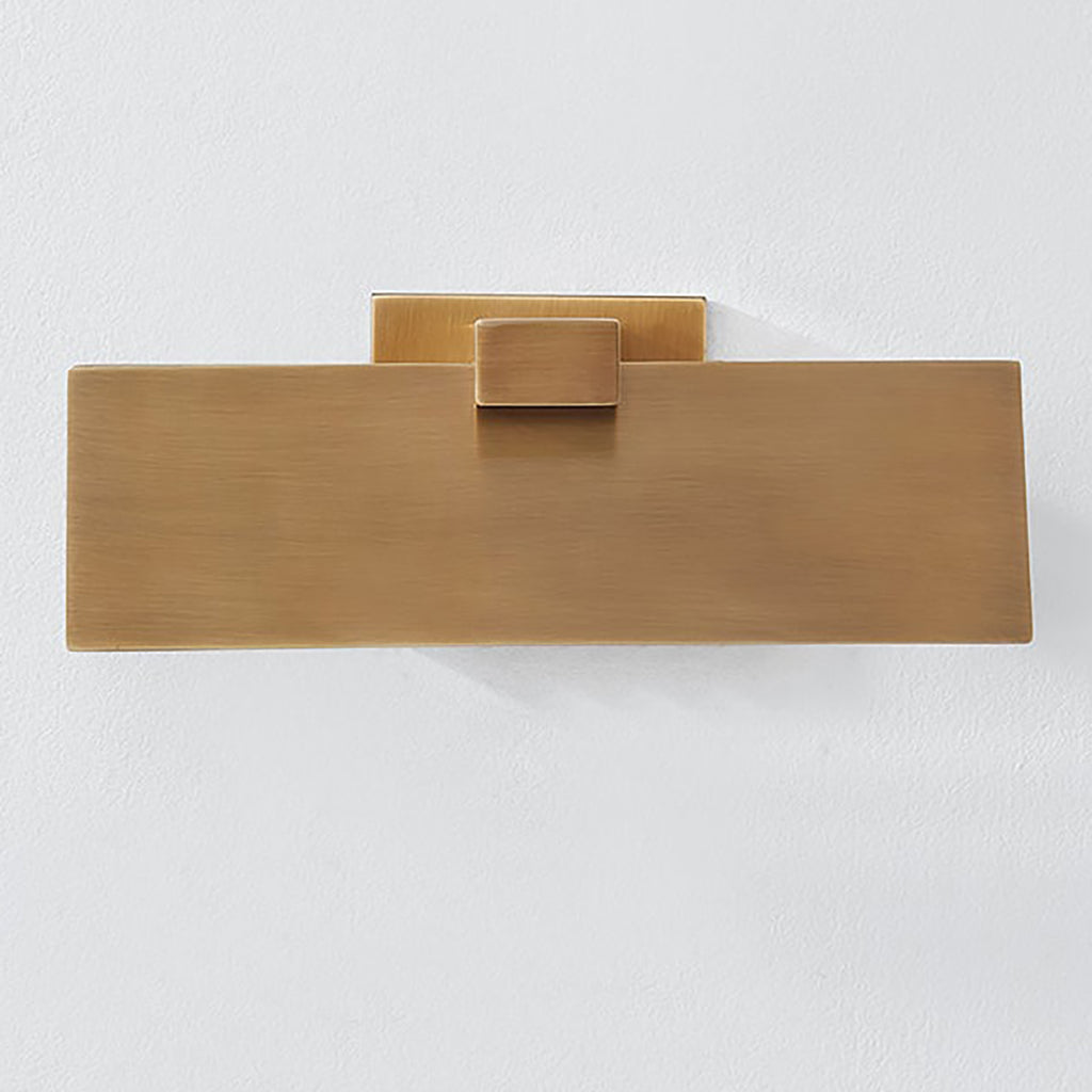An exploration of planar forms, the Troy Lander wall sconce pushes boundaries with its avant-garde approach to shape and construction. Featuring clean lines and right angles reminiscent of an open book, the versatile Lander can be oriented either upwards or downwards. The warm Patina Brass finish enhances the overall aesthetic, adding a rustic touch to this innovative fixture.