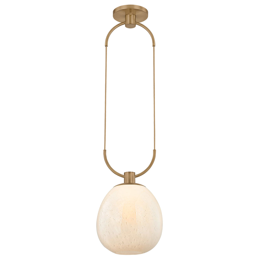 Soft and sculptural, the Troy Lighting Jove family filters light through an organic, jewelry-like lens. Each cloud seedy glass shade hangs from a looping Patina Brass frame, recalling the drape of a necklace. The cords can be adjusted to varying lengths, allowing for a customized composition. Available as a 1-light sconce, 1-light pendant, or 3-chandelier and 4-light linear, Jove is both a highly usable fixture and a statement-making ornament.