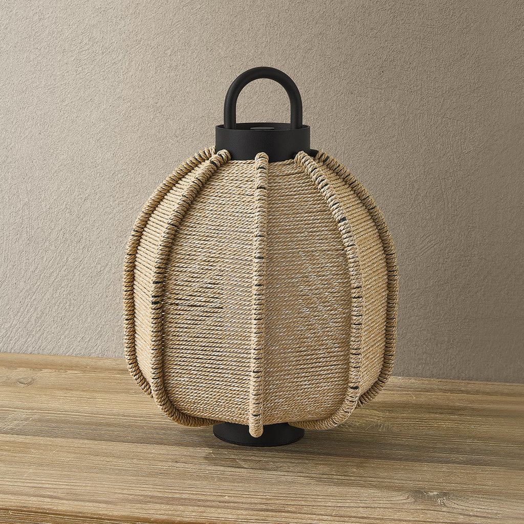The Troy Lighting Maltby lantern is designed to adapt to a variety of outdoor living areas, bringing light where hardwired fixtures aren’t possible. Wrapped in woven polypropylene cord and finished in Textured Black, it is weather-resistant, stylish, and built to last. Available in two sizes, the lanterns can be used alone as a table lamp, hung on a small or large wall hook as a sconce or placed on a lamp stand for ambient lighting. Simply remove and recharge the battery-powered LED when needed.