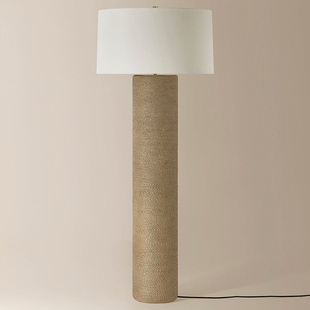 Like a tree trunk reaching for the sky, Troy Lighting Roan is statuesque and statement-making. Each lamp features a cylindrical base wrapped in bleached jute rope, showcasing the beauty of the fiber’s weave. An off-white linen drum shade lends a softness to the design, accented by Patina Brass hardware. Available as a table and floor lamp, Roan brings a touch of nature indoors.
