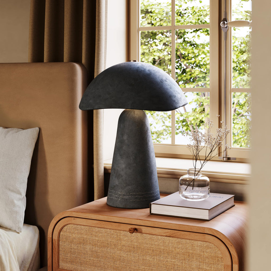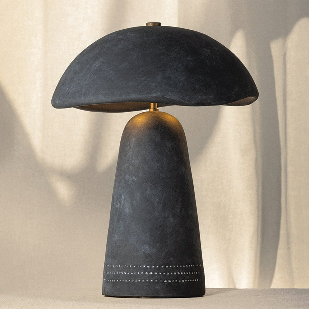 A play on Toni Morrison's novel 'Song of Solomon', Troy Lighting Soloma embodies the diverse potential of a single material. Crafted entirely from Aritsan White ceramic, this sculptural table lamp features a distinctive dome-shaped shade with an irregular edge. Inspired by the spirituality of the color white, Nash wanted there to be a sacredness to this lamp's design. Its sculptural simplicity exudes a quiet power. Part of our Loft and Thought collection.