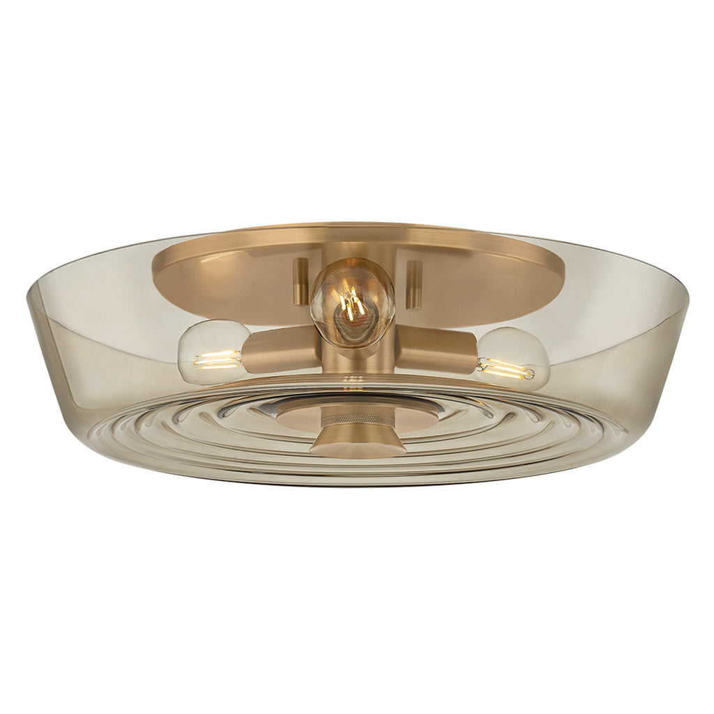 Troy Lighting Theodore reimagines a classic flush mount silhouette as a ripple frozen in glass. Concentric light bronze glass rings radiate outward from a Patina Brass center, which lends the fixture a warm, vintage feel. This highly versatile 3-light staple illuminates hallways, kitchens, and bedrooms.