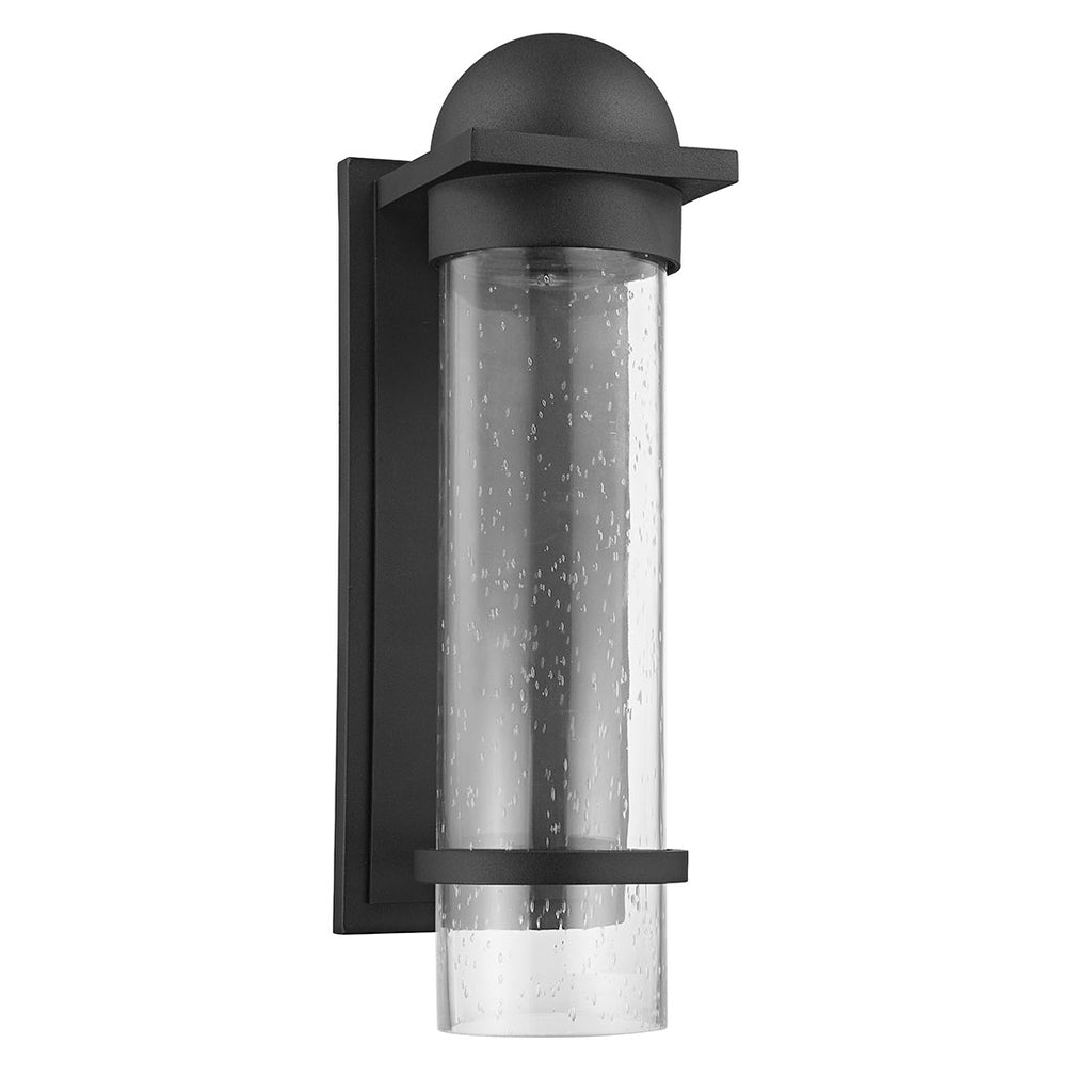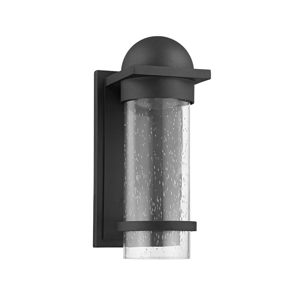 Casual, sophisticated, and little bit curious, express yourself with eclectic, artisan-made lighting by Troy. Let's take this outside, shall we? Troy lighting offers versatile outdoor lighting for doors, patios, or any space that needs extra illumination. The Troy Nero exterier wall sconce takes modern industrial to new heights, pairing dark finishes with clear seeded glass for an unexpected twist. A large backplate anchors the design, grounding the tubular light fixture. The linear silhouette is accented with metal bands, finished in textured black or bronze. Dark sky compliant.